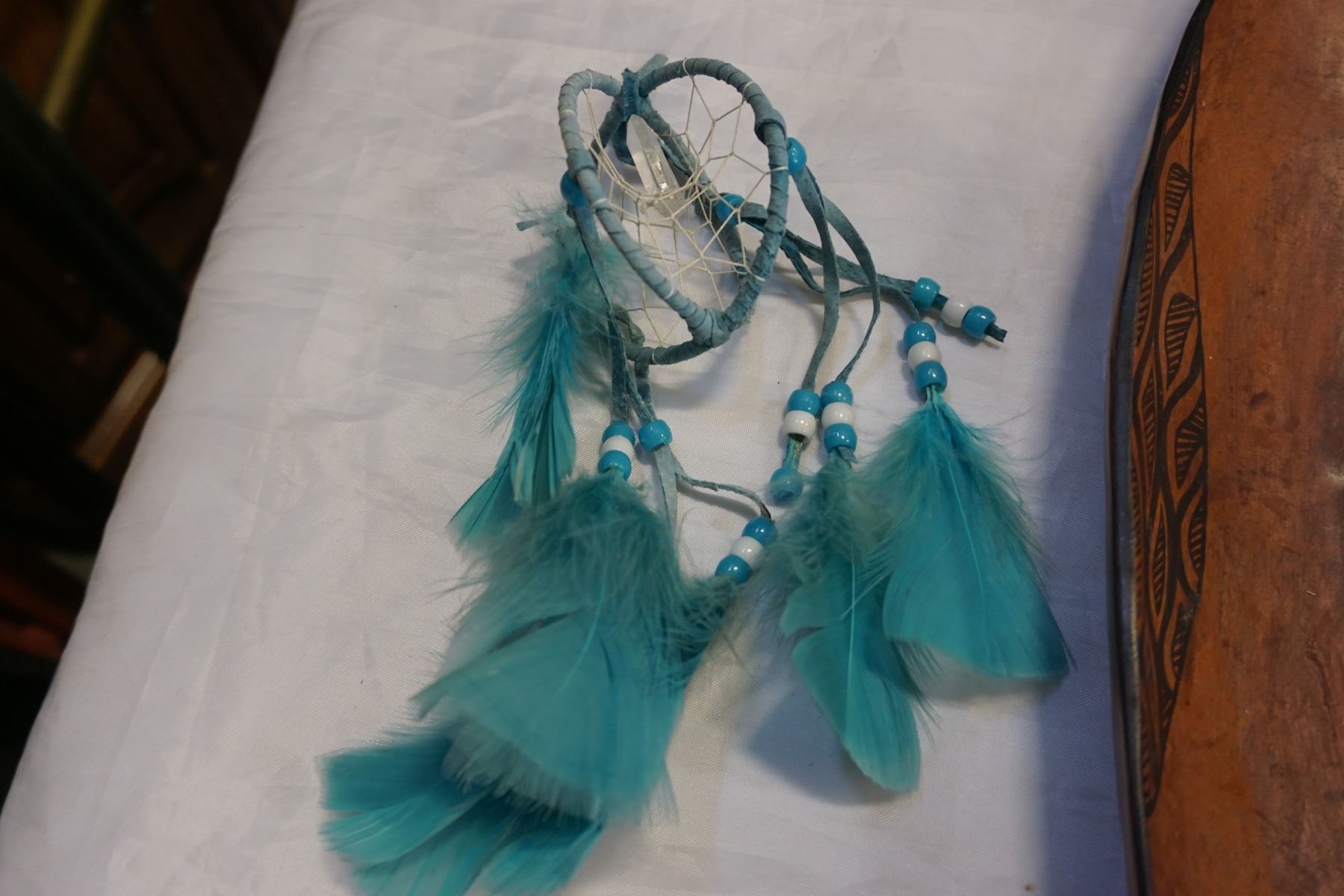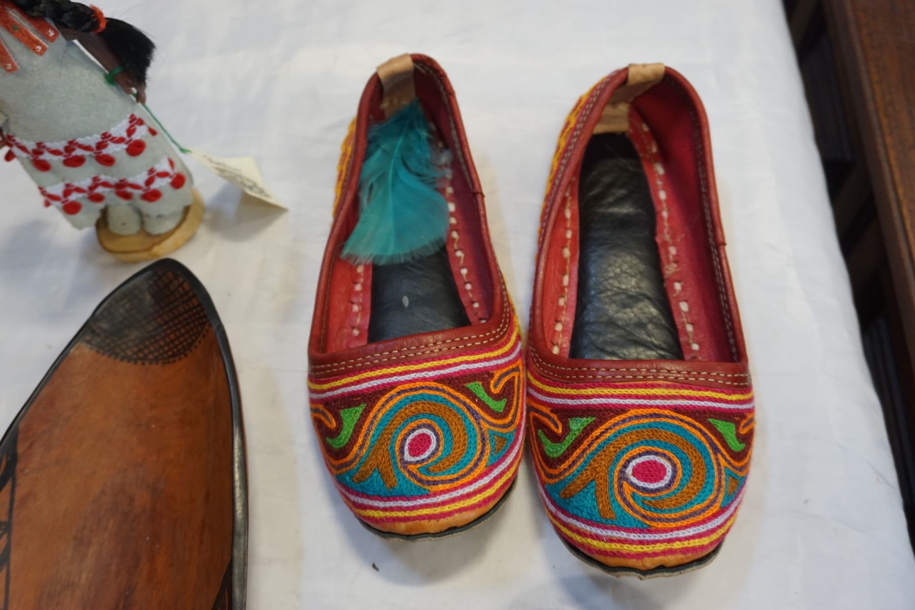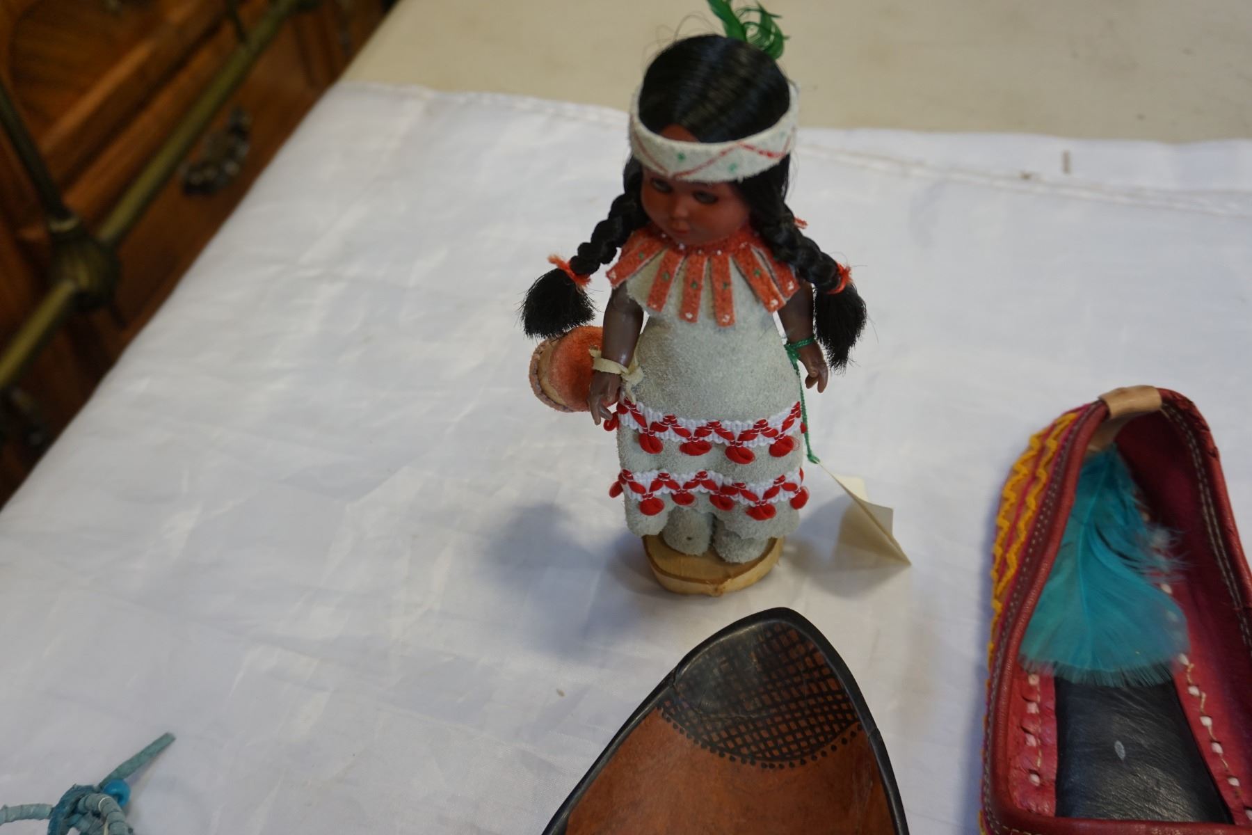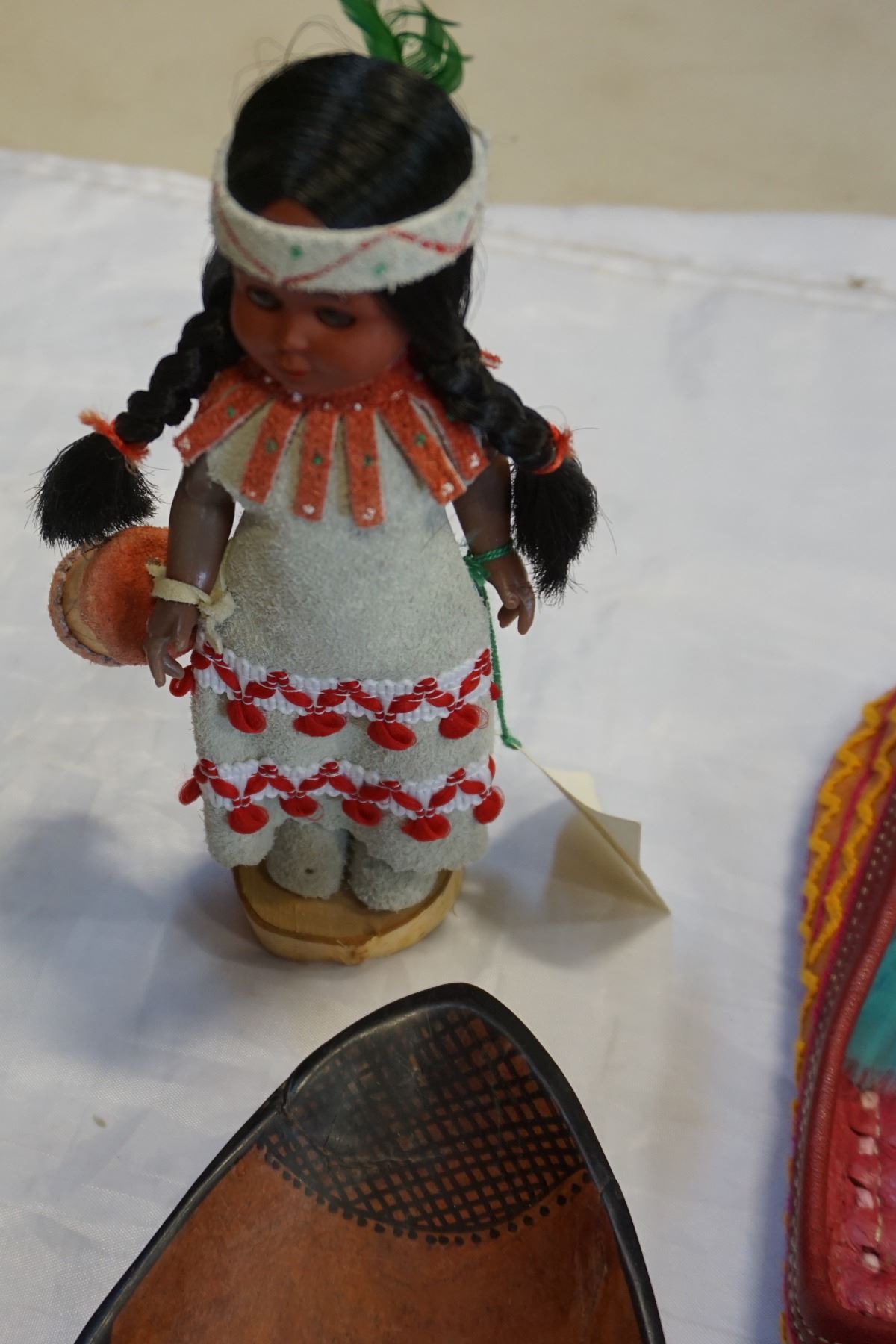 FIRST NATIONS SLIPPERS, SMALL CARVED TOTEM, AND BOWL W/ DREAMCATCHER