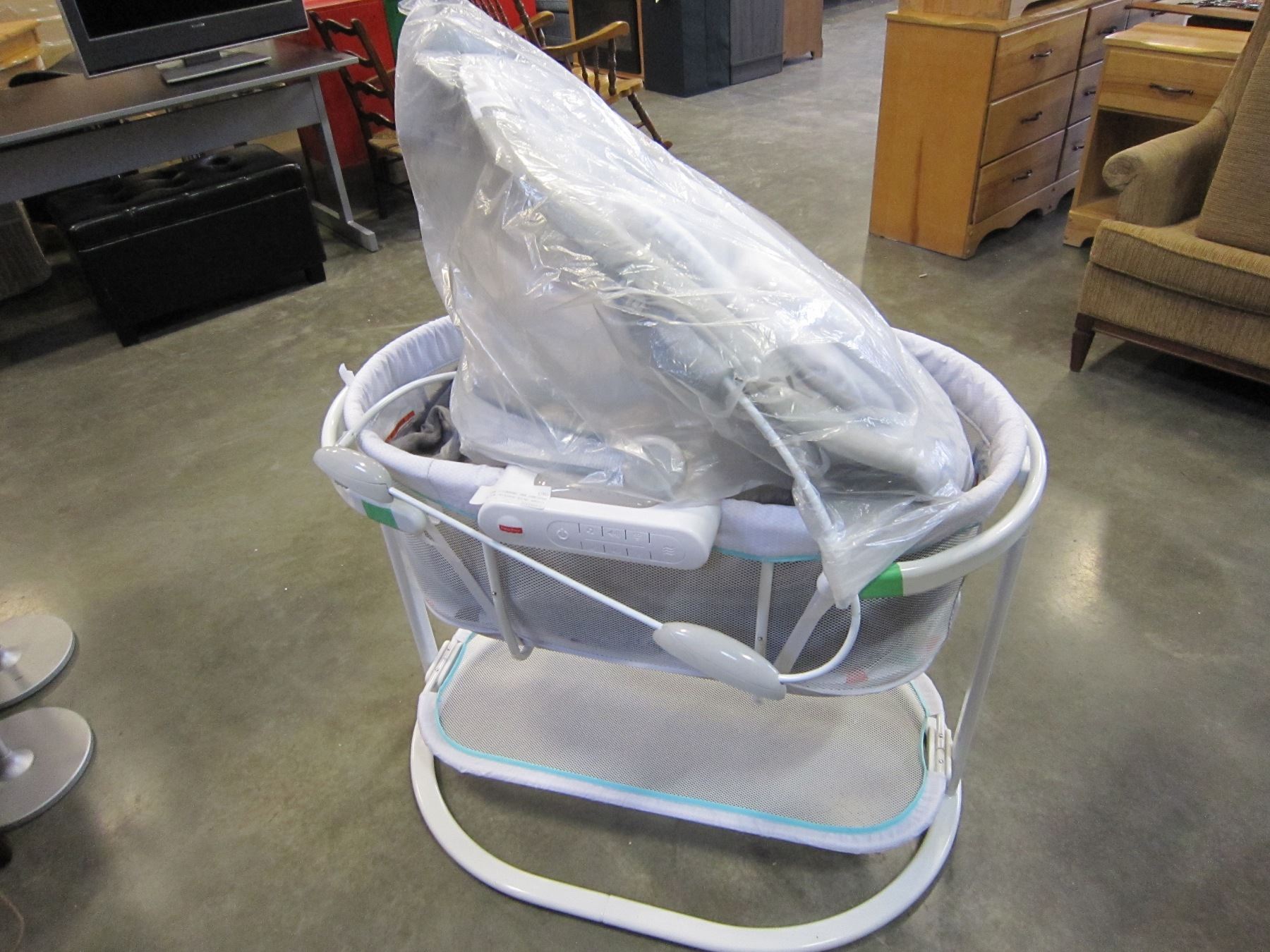 FISHER PRICE SOOTHING MOTION BASSINET AND INGENUITY BABY CHAIR
