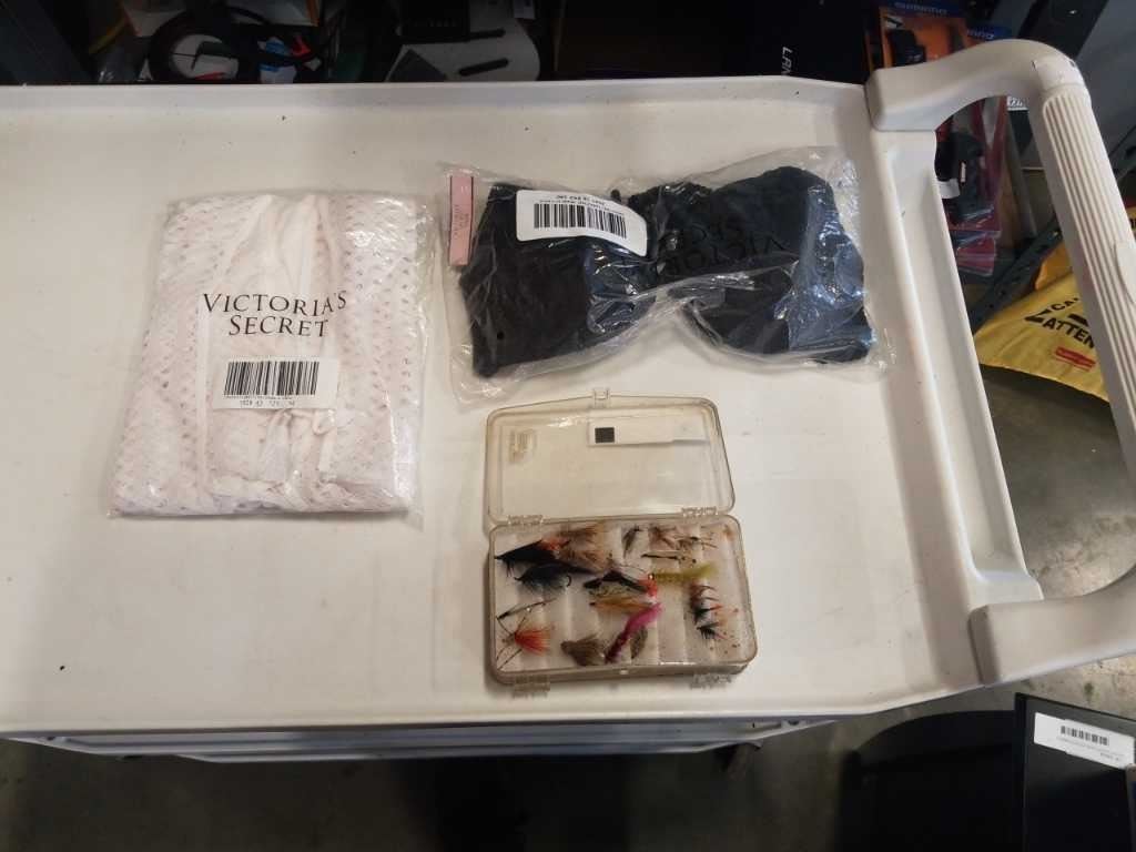FISHING FLIES AND VICTORIA SECRET CLOTHING - SIZE MEDIUM TOP AND 34C BRA