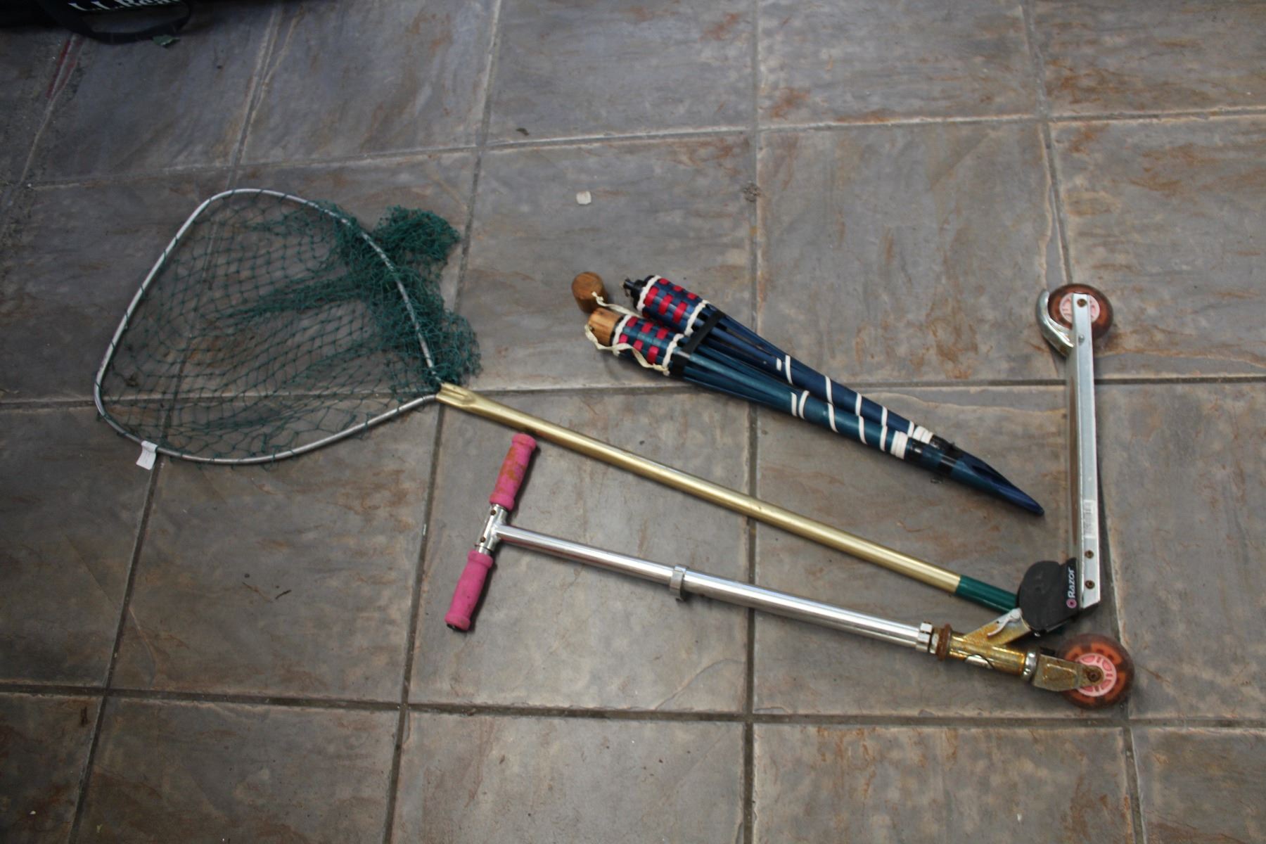 FISHING NET AND 2 TIKI TORCHES AND RAZOR SCOOTER