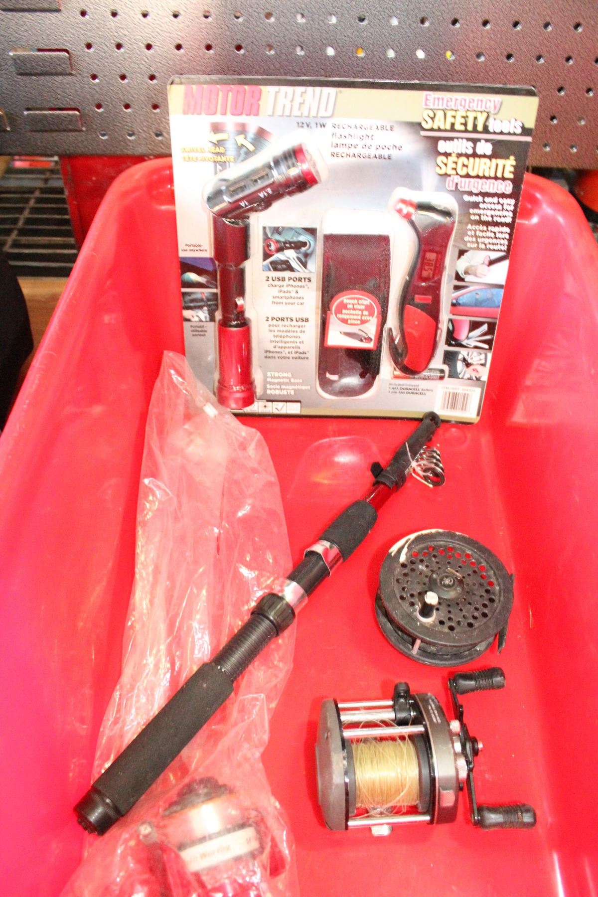 FISHING REELS TACKLE BOX AND COLLAPSIBLE ROD