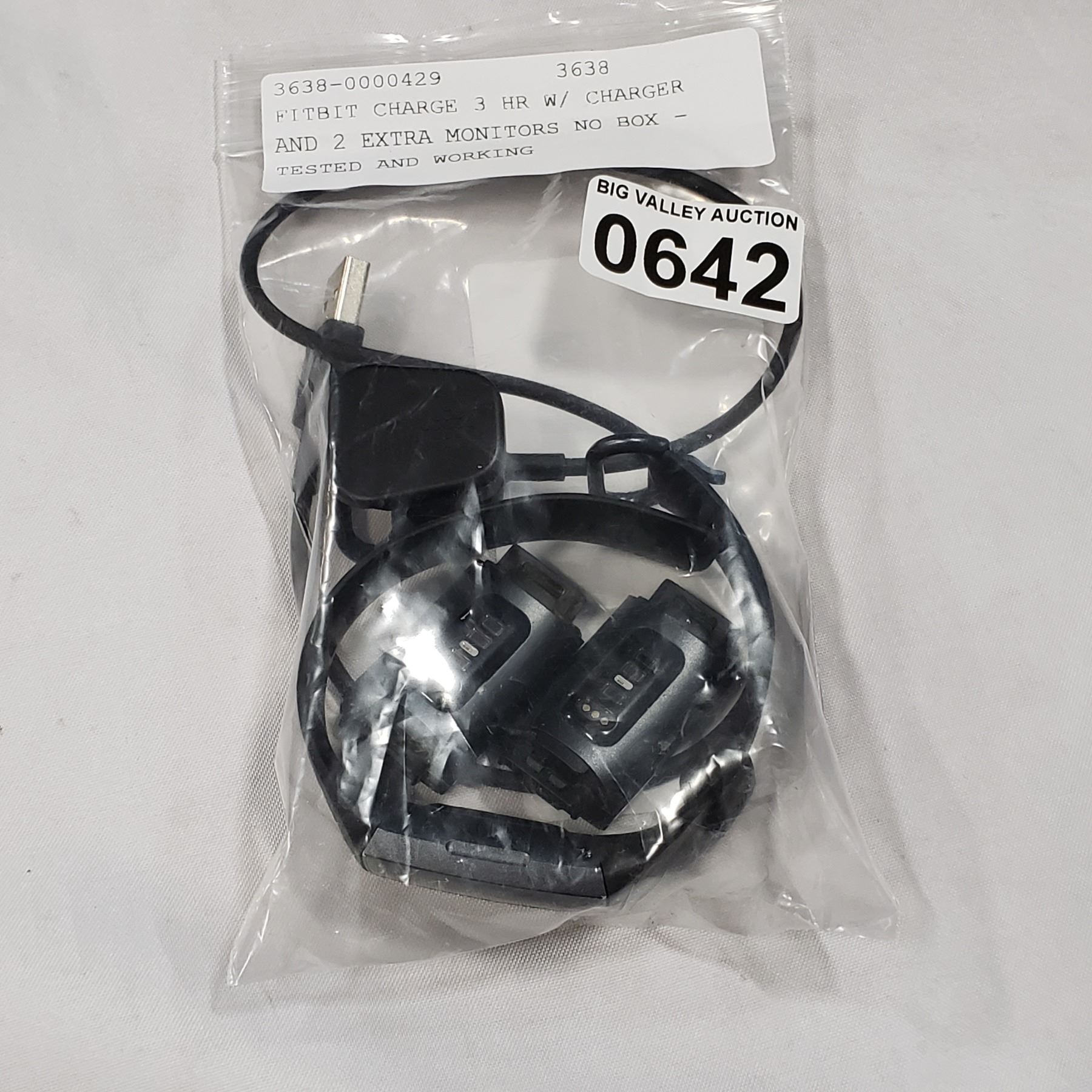 FITBIT CHARGE 3 HR W/ CHARGER AND 2 EXTRA MONITORS NO BOX - TESTED AND WORKING