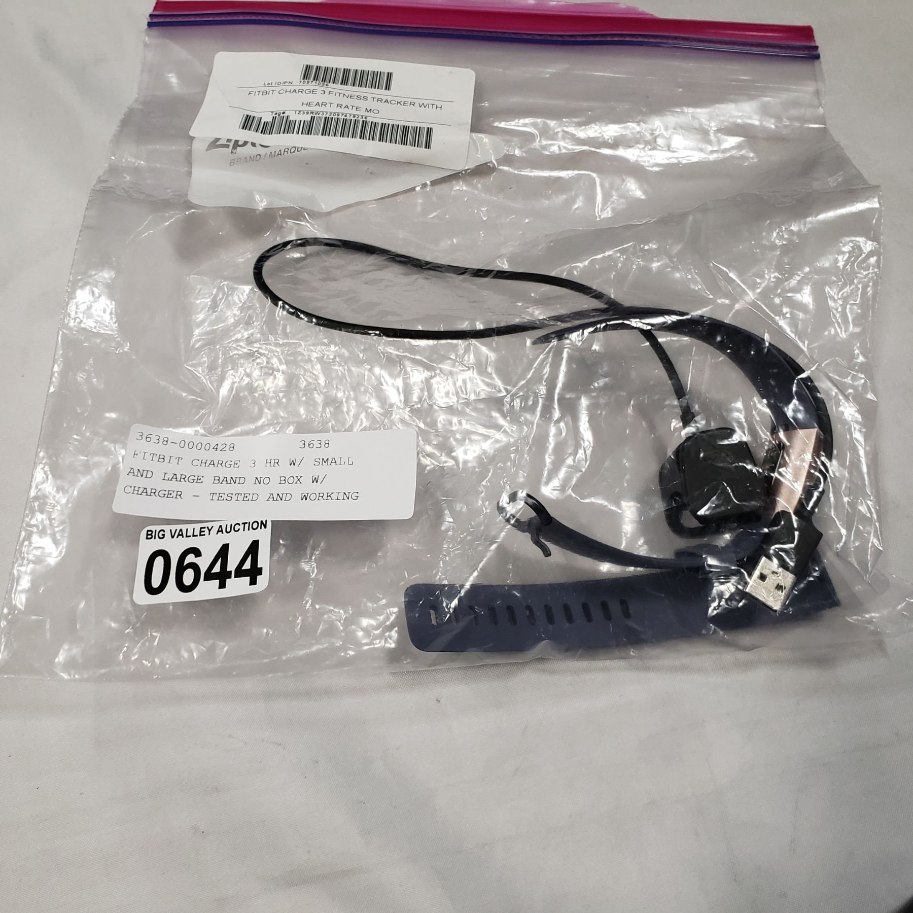 FITBIT CHARGE 3 HR W/ SMALL AND LARGE BAND NO BOX W/ CHARGER - TESTED AND WORKING