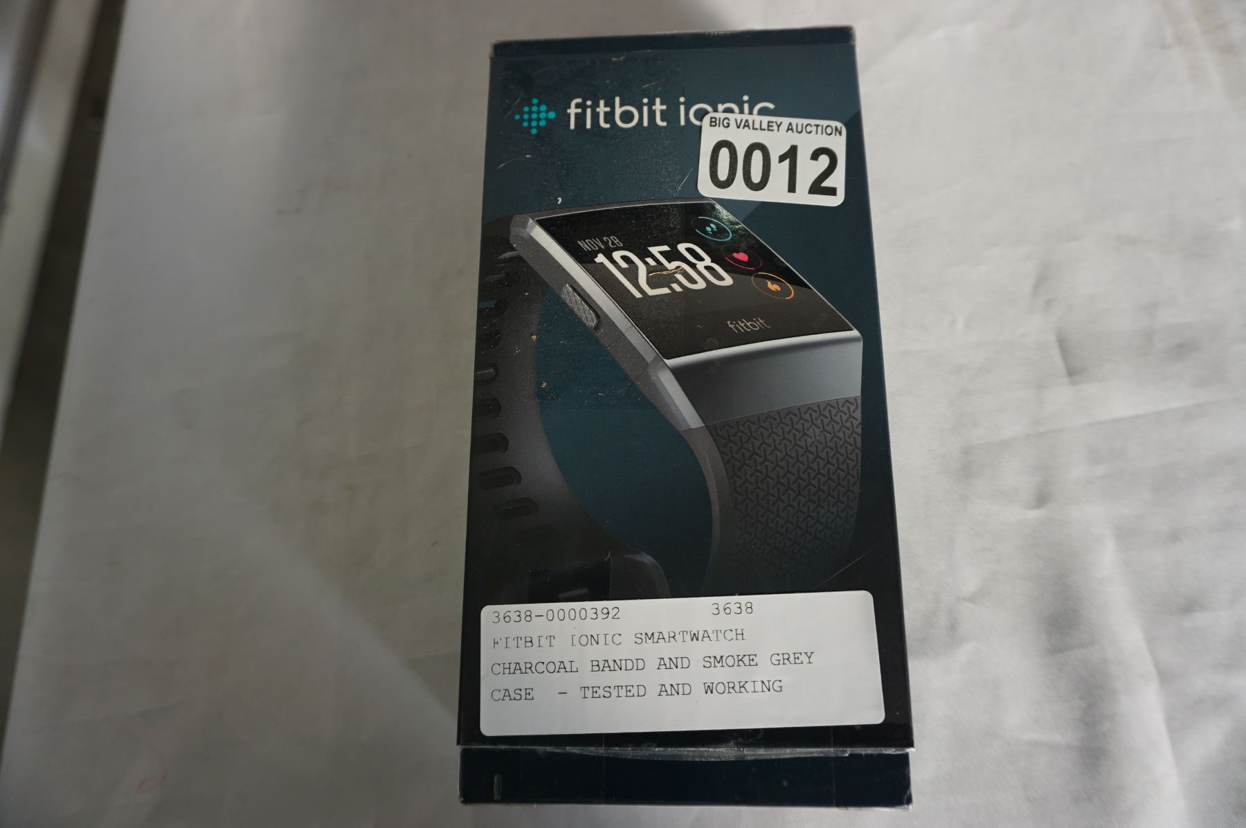 FITBIT IONIC SMARTWATCH CHARCOAL BANDD AND SMOKE GREY CASE - TESTED AND WORKING
