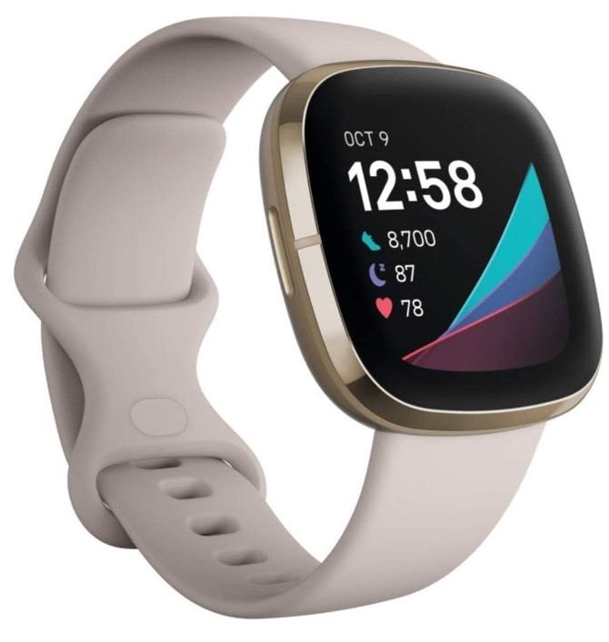 FITBIT SENSE LUNAR WHITE GOLD FITNESS WATCH - TESTED WORKING, RETAIL $229