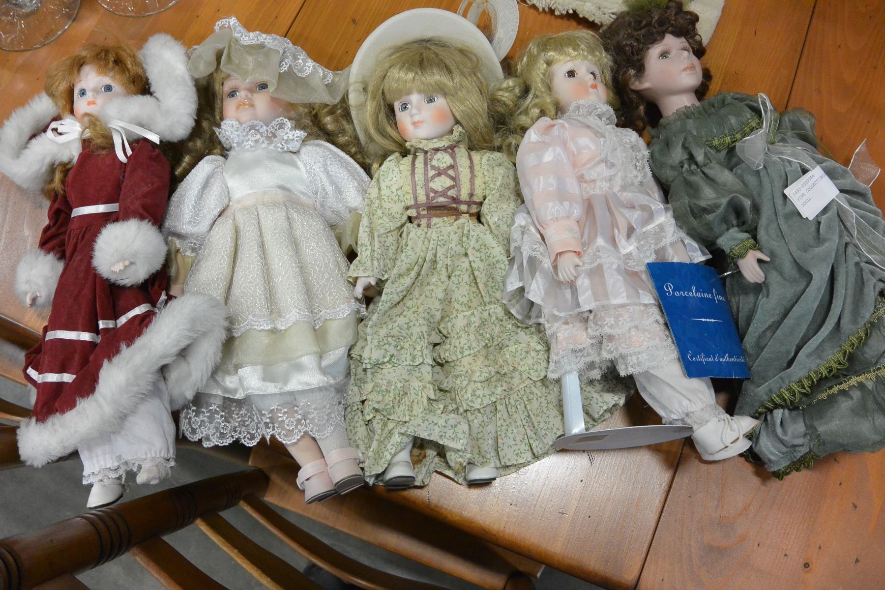 FIVE COLLECTIBLE PORCELAIN DOLLS