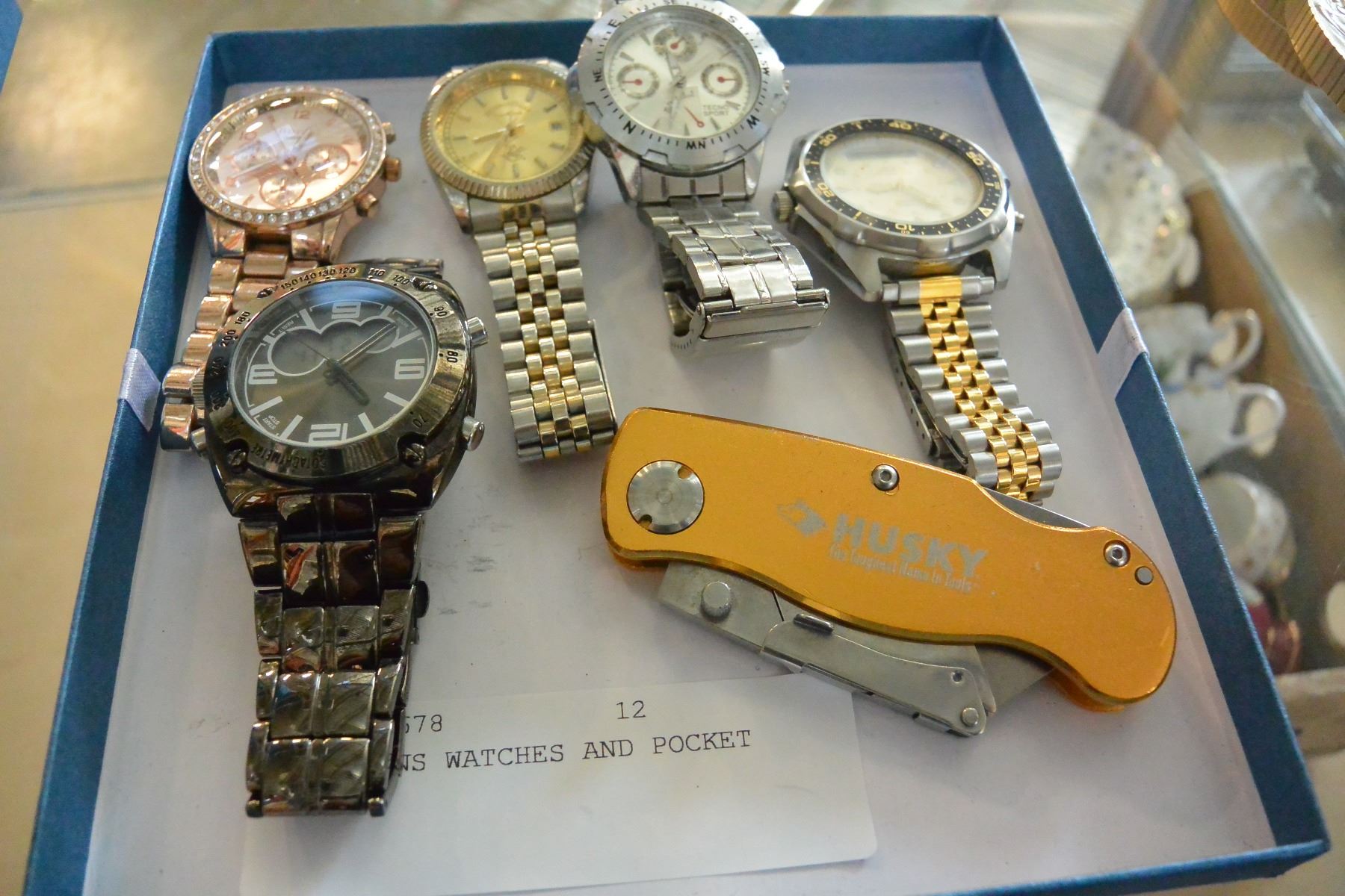 FIVE MENS WATCHES AND POCKET KNIFE