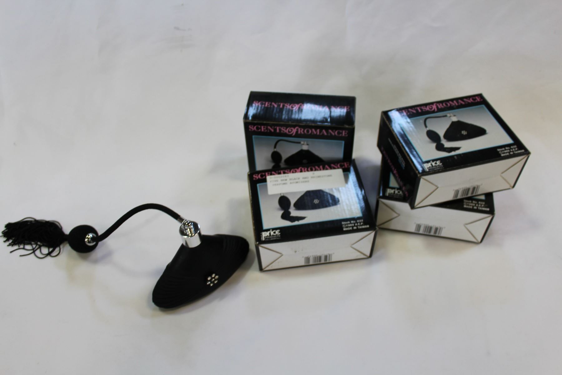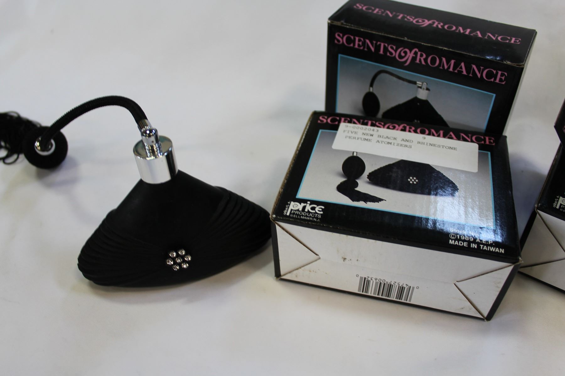 FIVE NEW BLACK AND RHINESTONE PERFUME ATOMIZERS