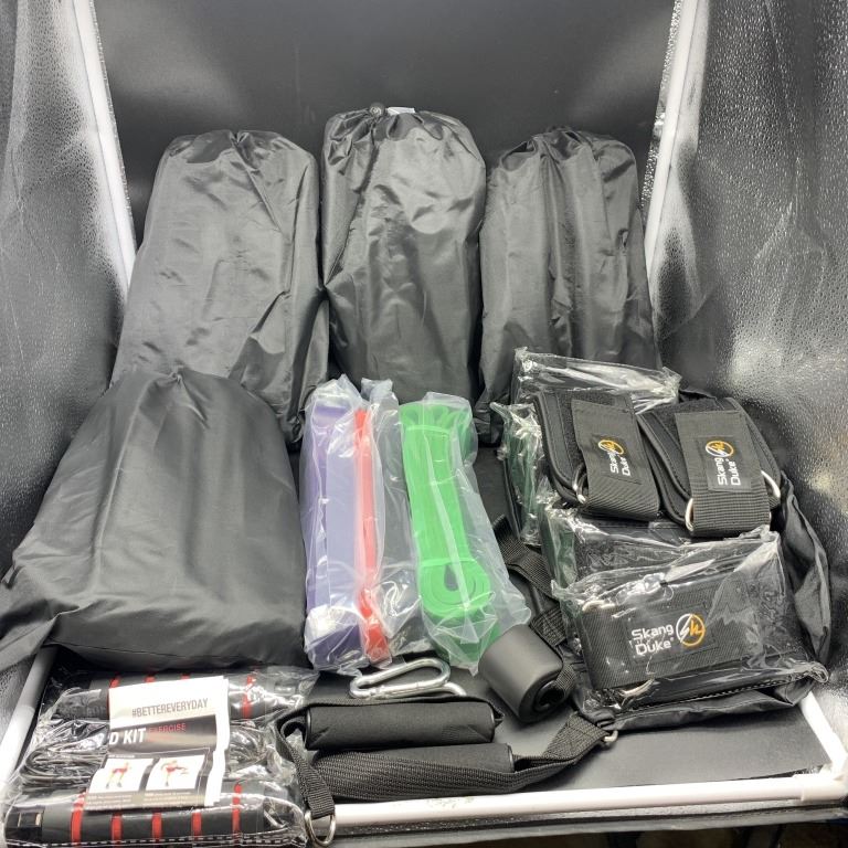FIVE NEW HEAVY DUTY RESISTANCE BAND SETS AND SIX PAIRS OF EXERCISE ANKLETS RETAIL $180