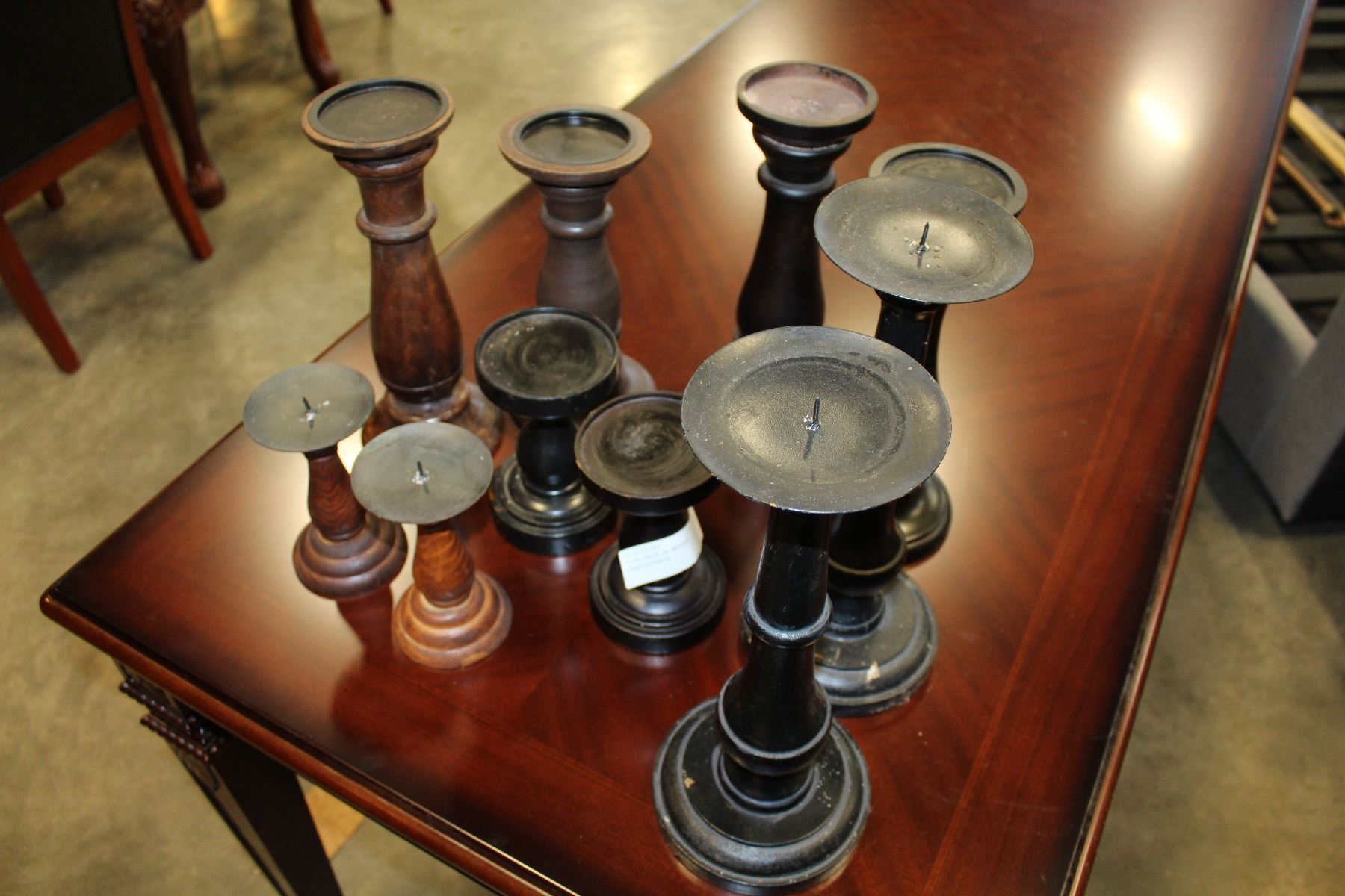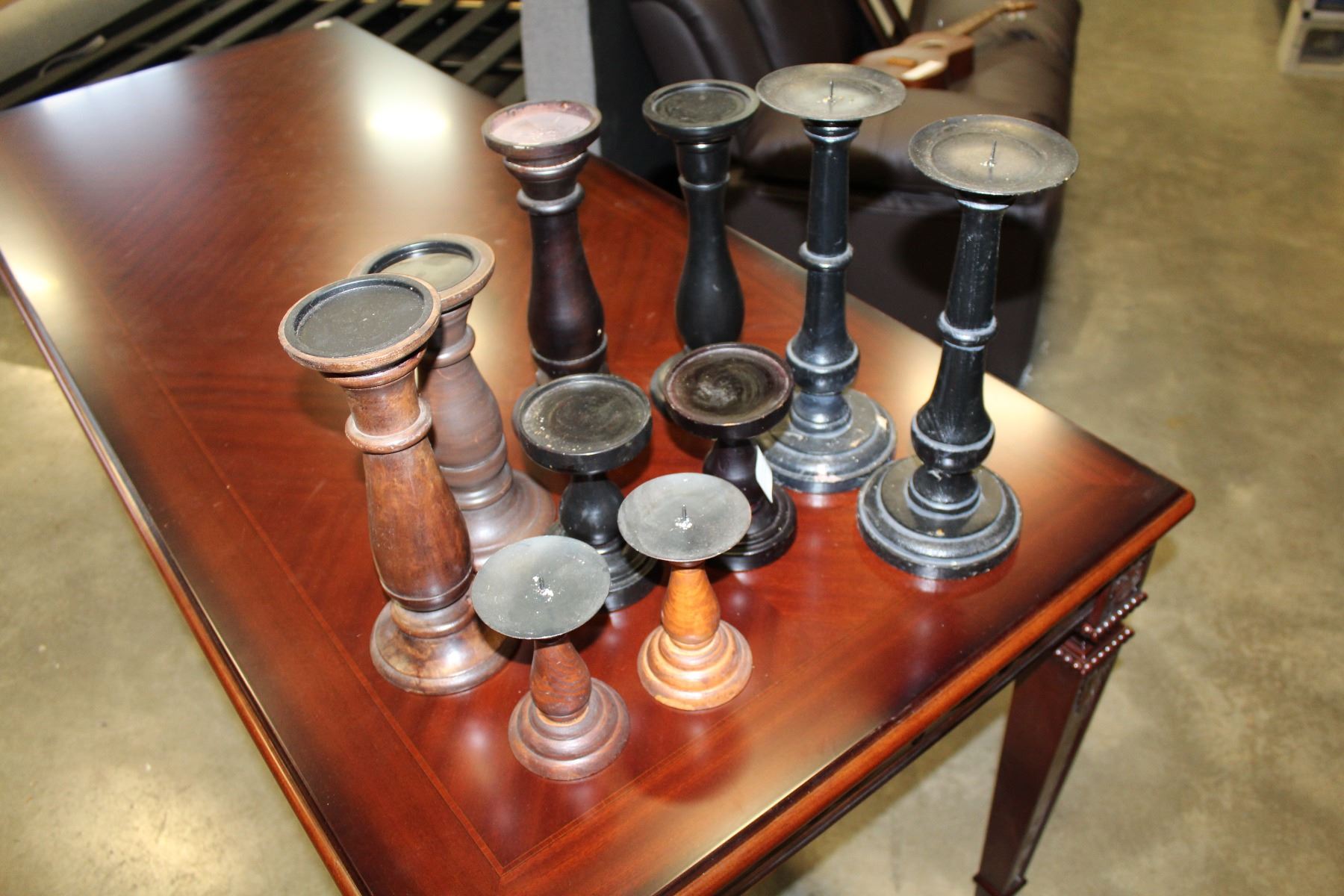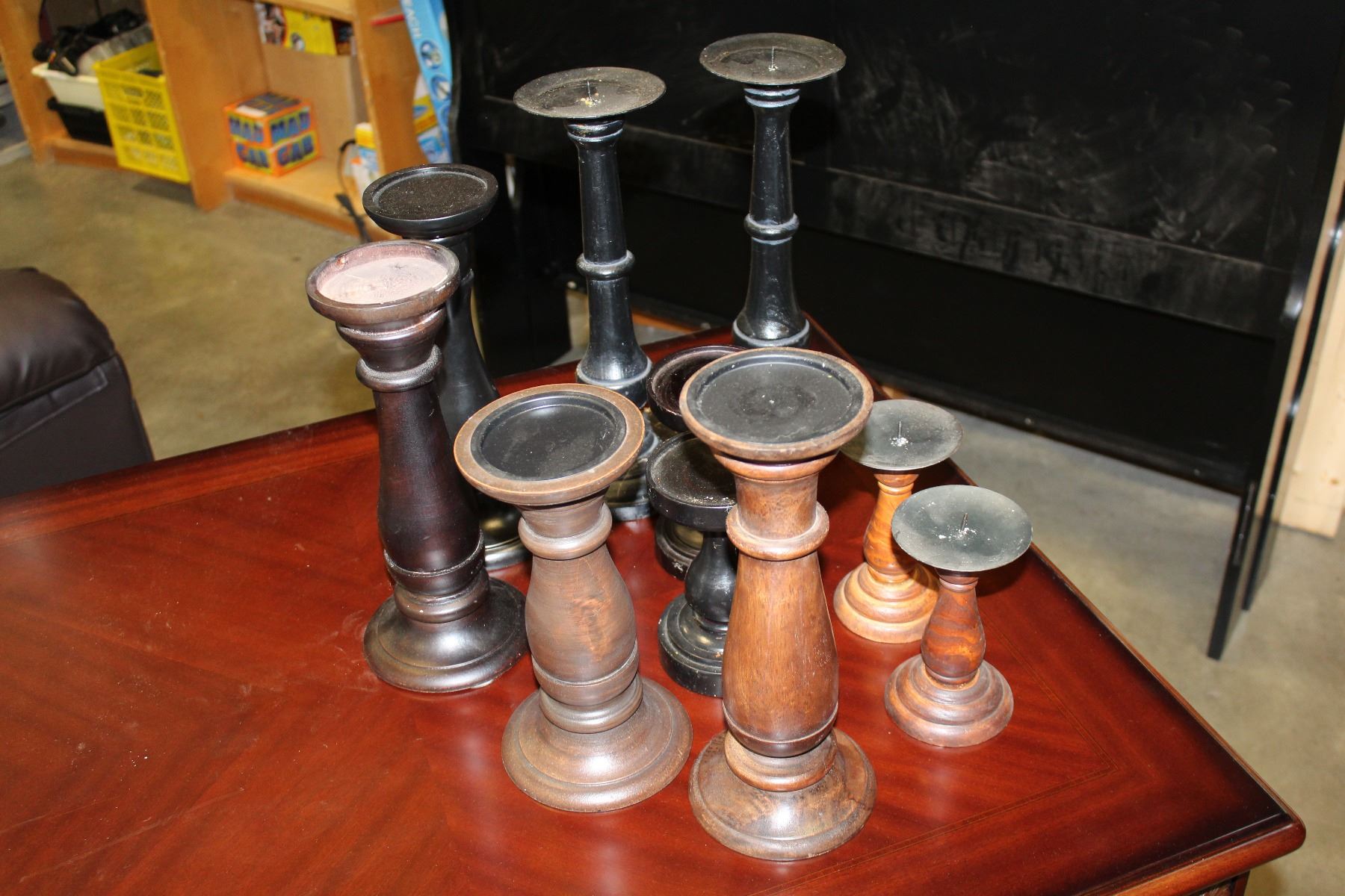 FIVE PAIR OF WOODEN CANDLESTANDS
