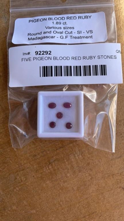 FIVE PIGEON BLOOD RED RUBY STONES 1.89CT