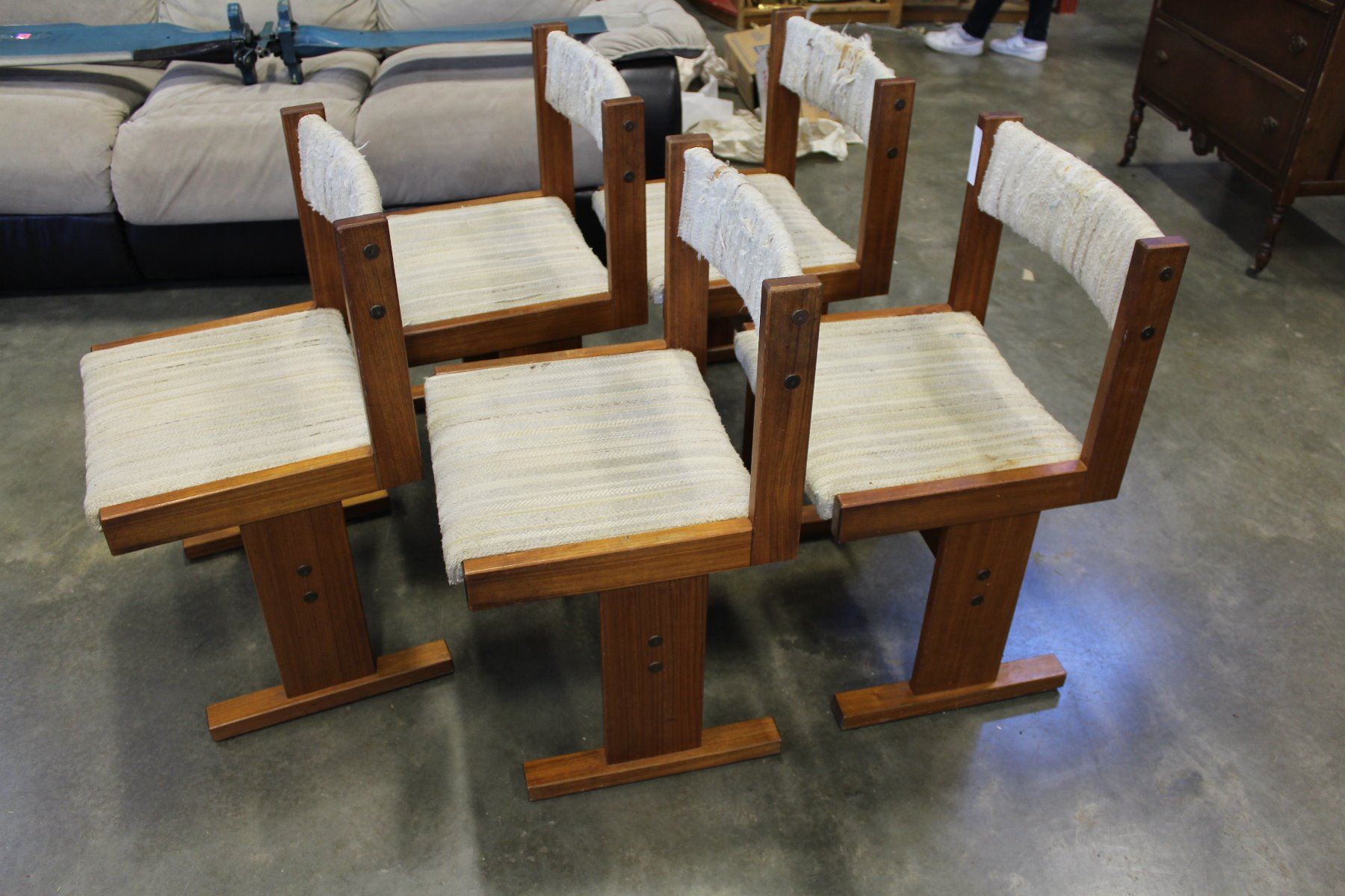 FIVE TEAK DINING CHAIRS