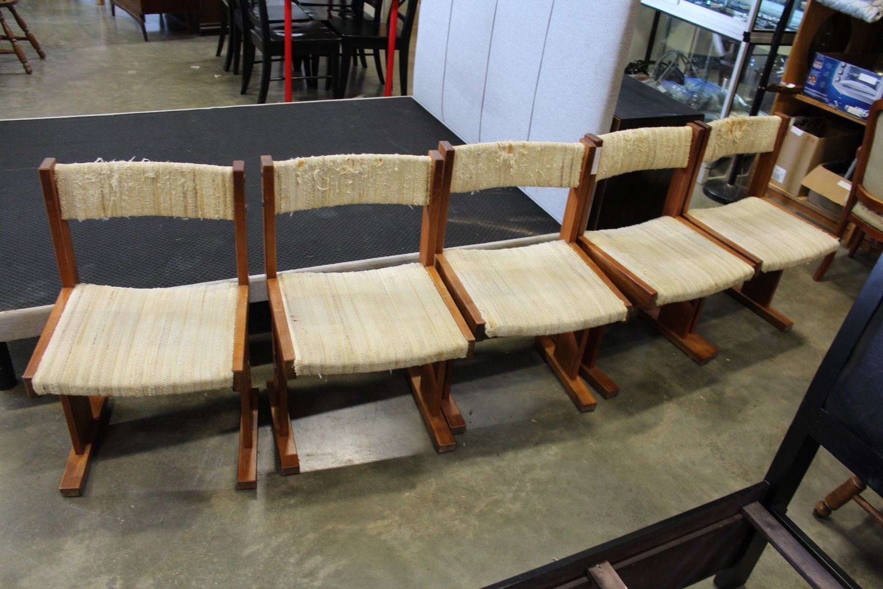 FIVE TEAK DINING CHAIRS
