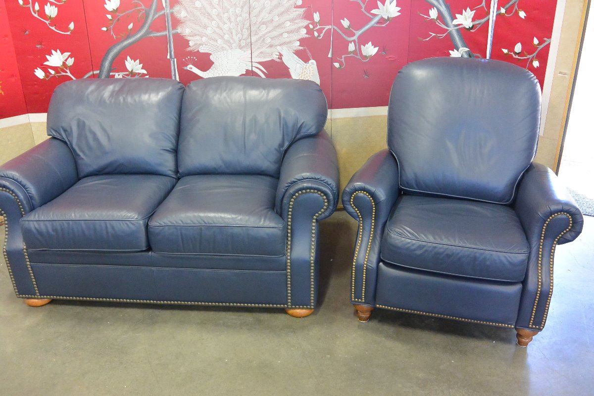 FLEXSTEEL LEATHER LOVESEAT AND CHAIR