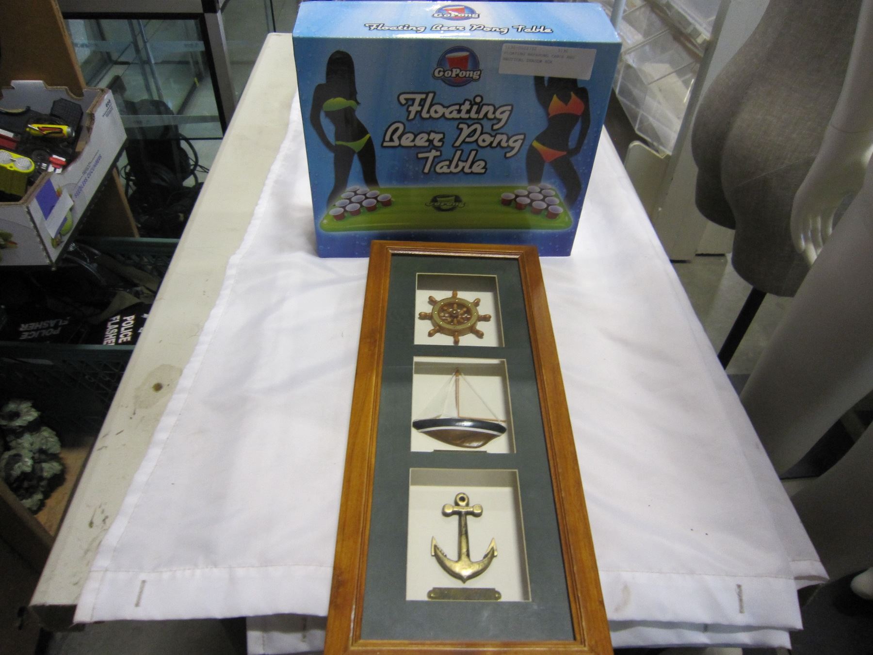 FLOATING BEERPONG TABLE AND NAUTICAL SHADOW BOX