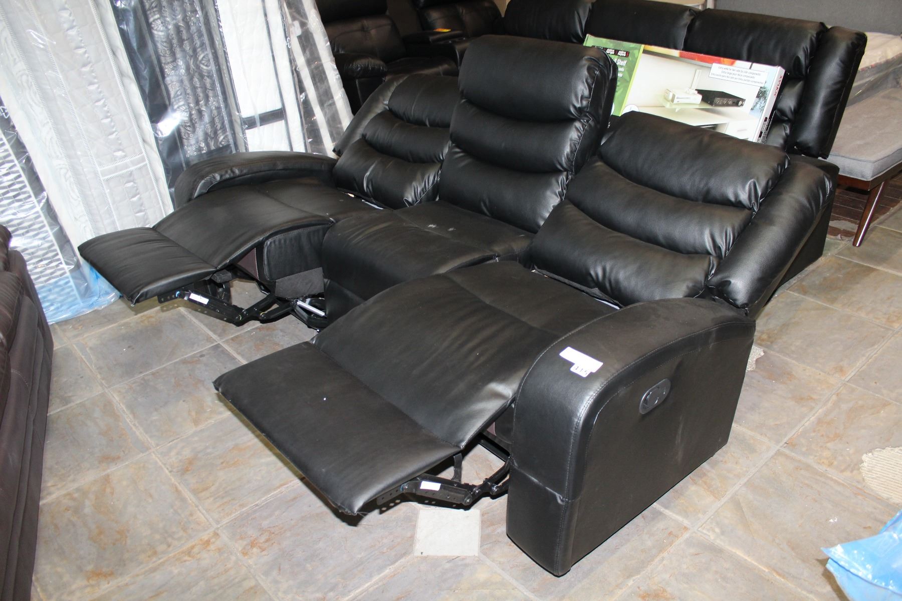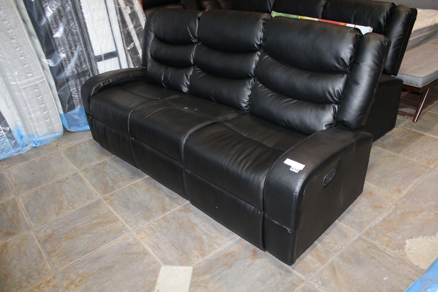 FLOOR MODEL ASHLEY DESIGN BLACK LEATHER DOUBLE RECLINING SOFA, RETAIL $1299