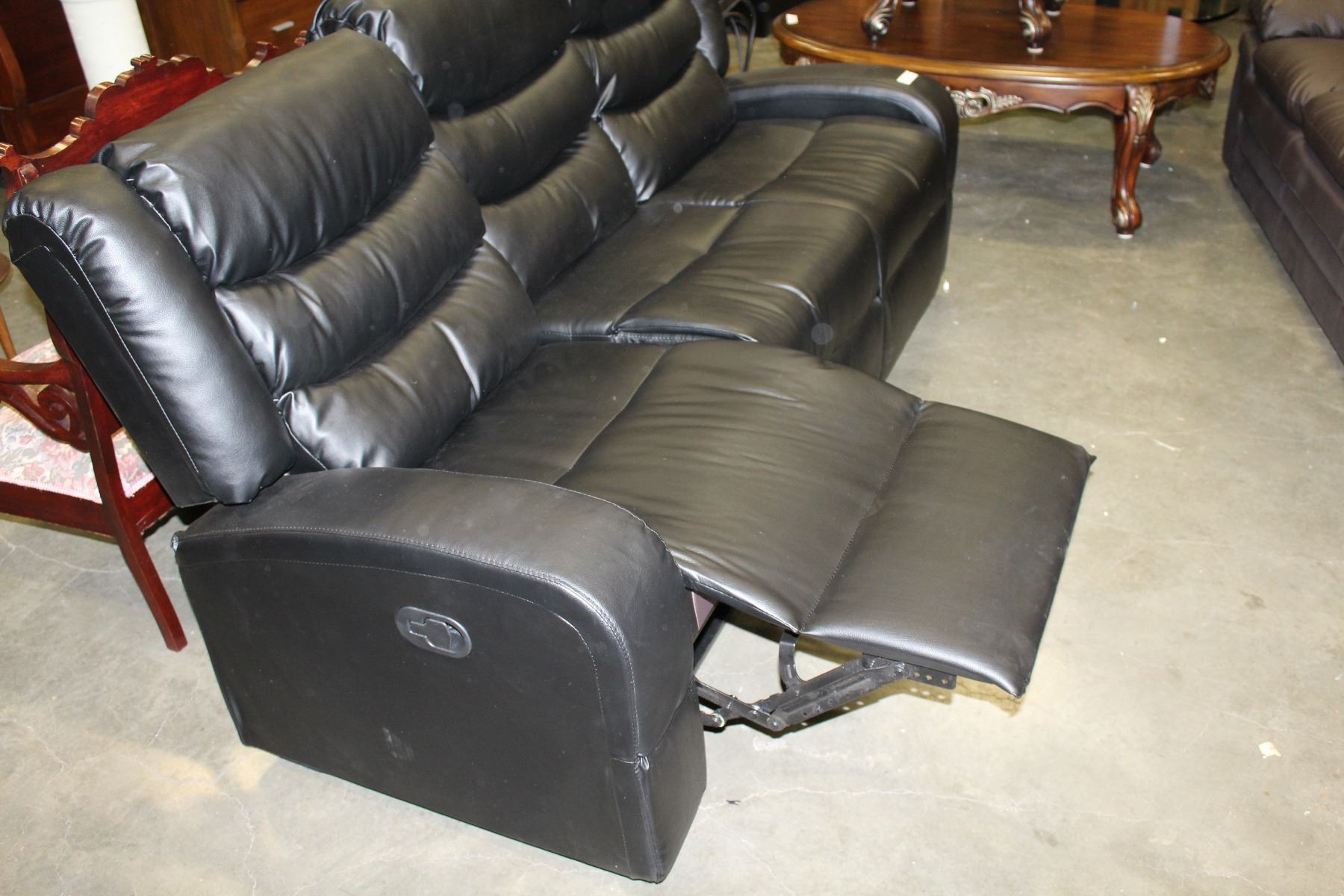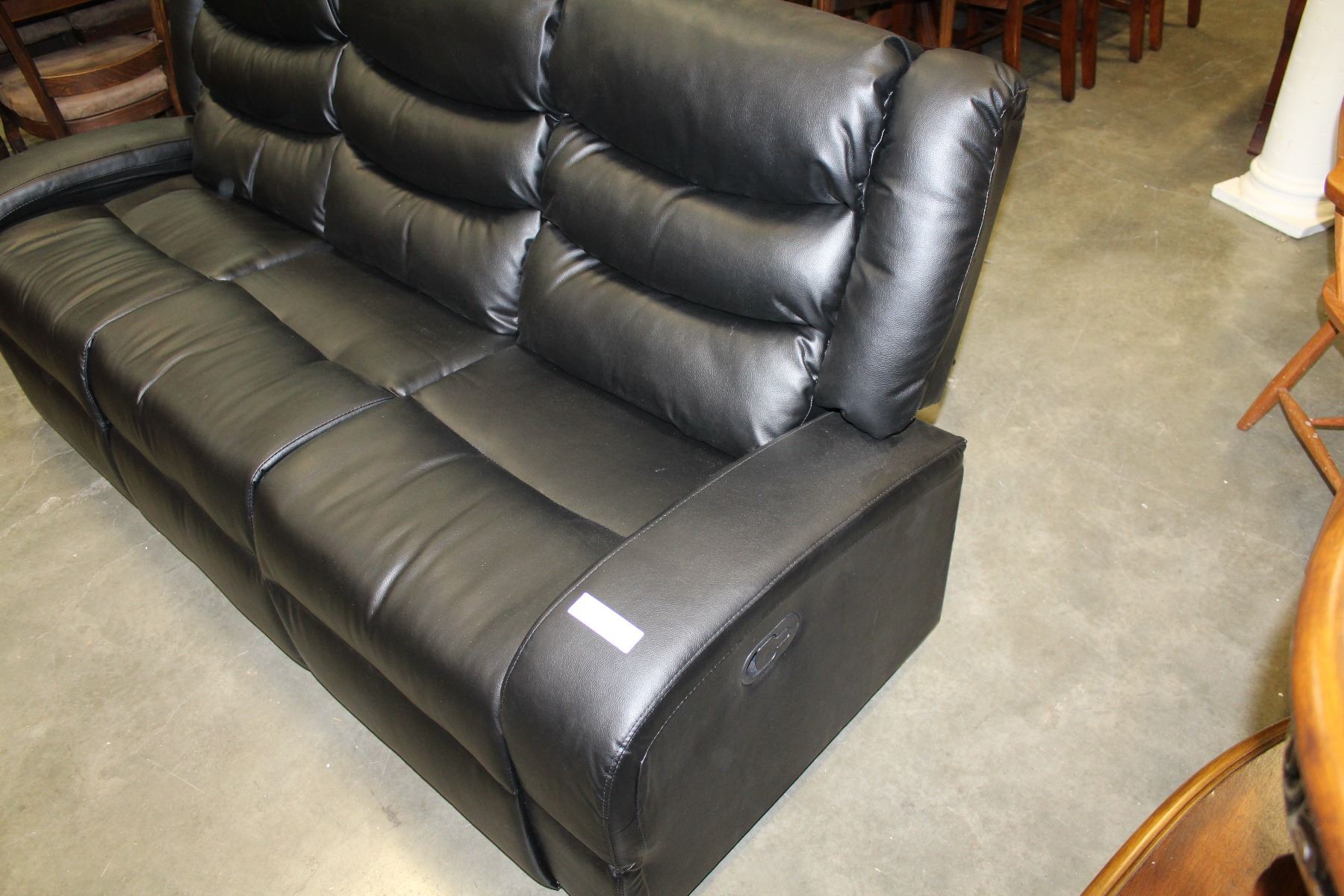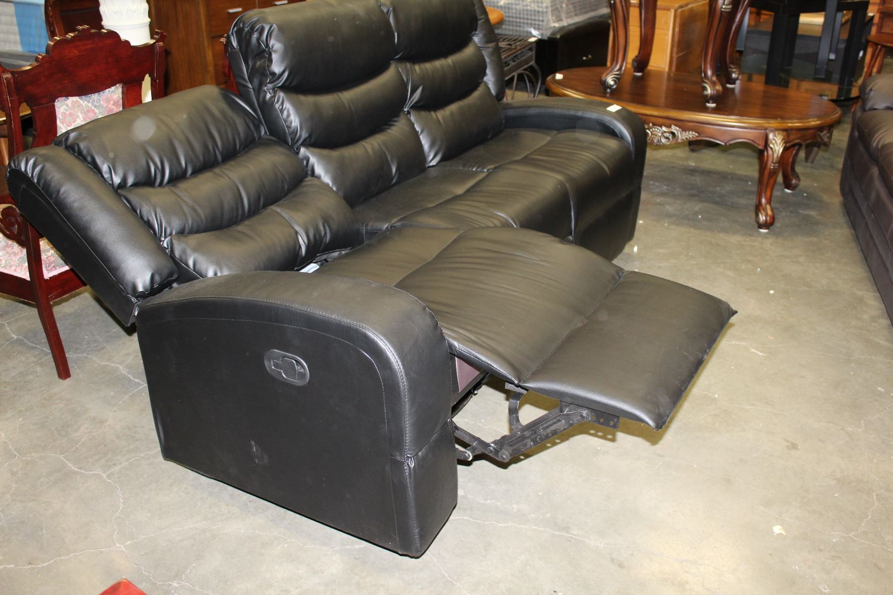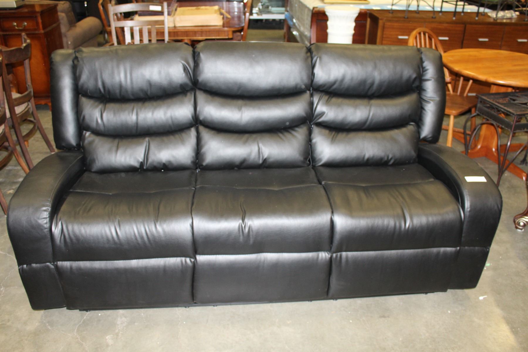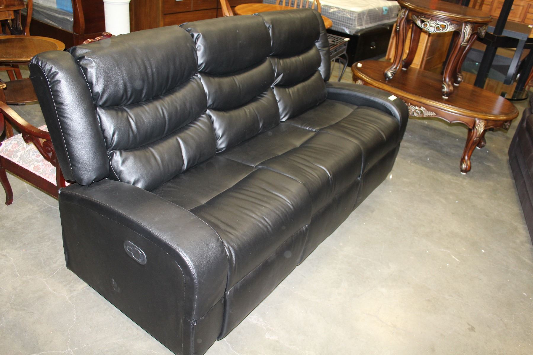 FLOOR MODEL ASHLEY DESIGN BLACK LEATHER DOUBLE RECLINING SOFA, RETAIL $1299