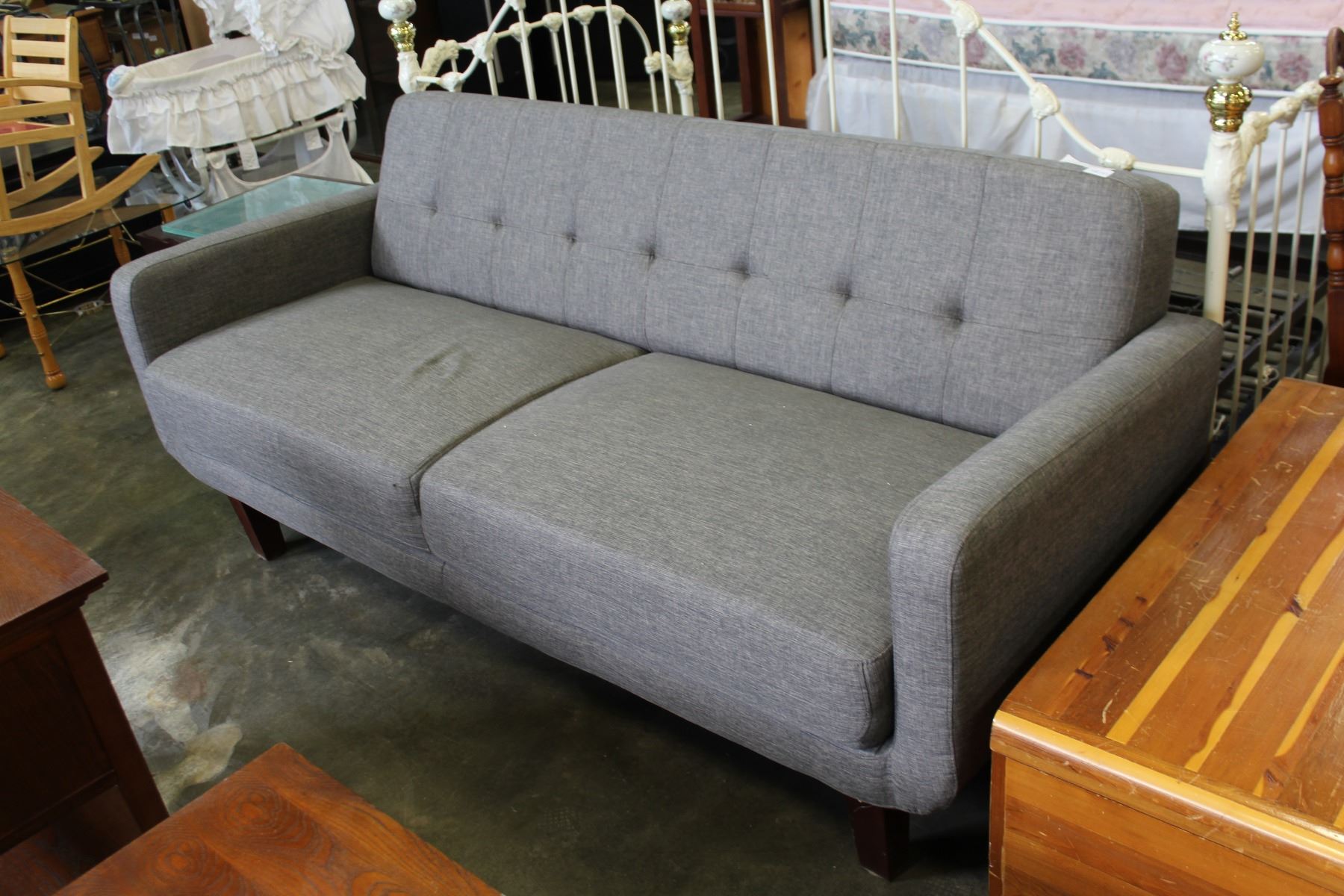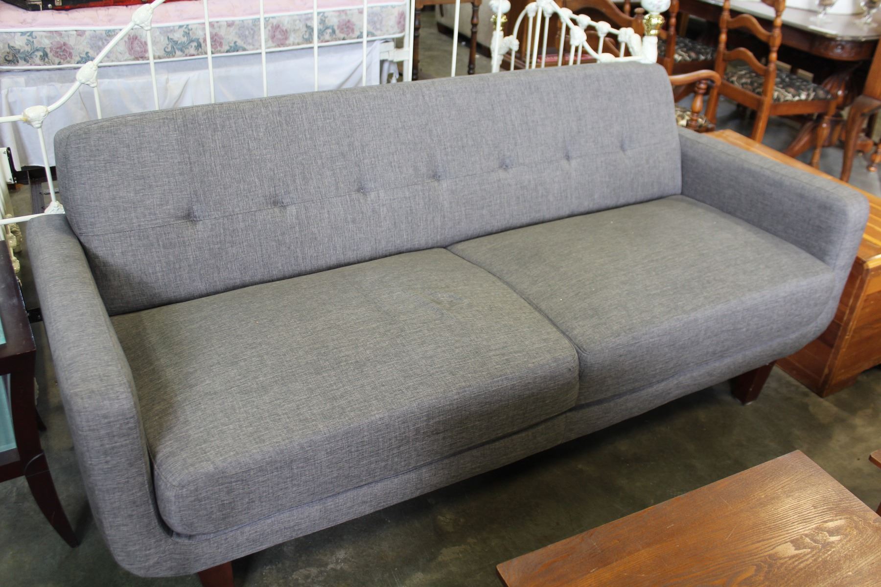 FLOOR MODEL HOME ELEGANCE GREY FABRIC MODERN CLUB CSTYLE SOFA, RETAIL $799