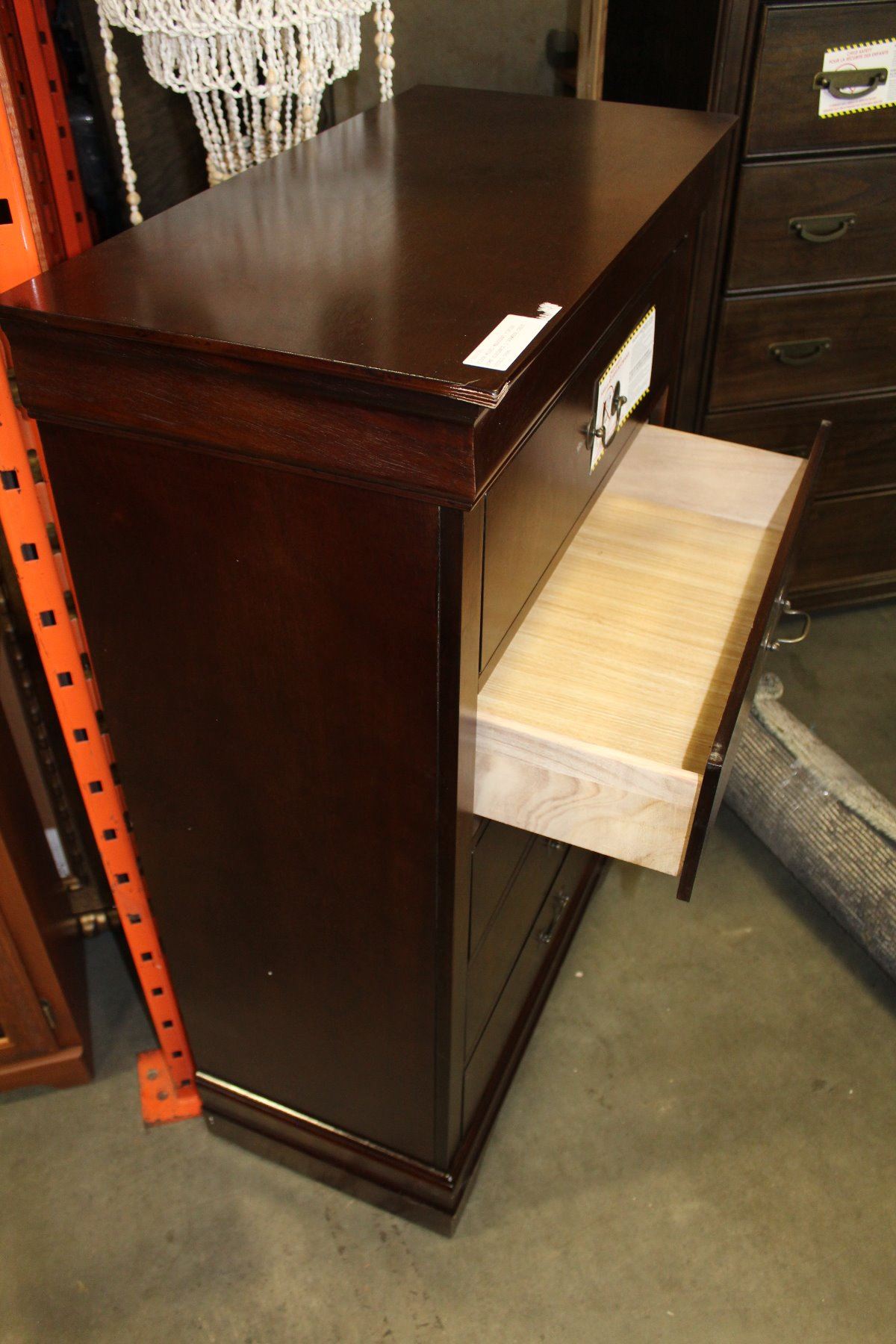 FLOOR MODEL MAHOGANY FINISH HOME ELEGANCE 5 DRAWEER CHEST RETAIL $699