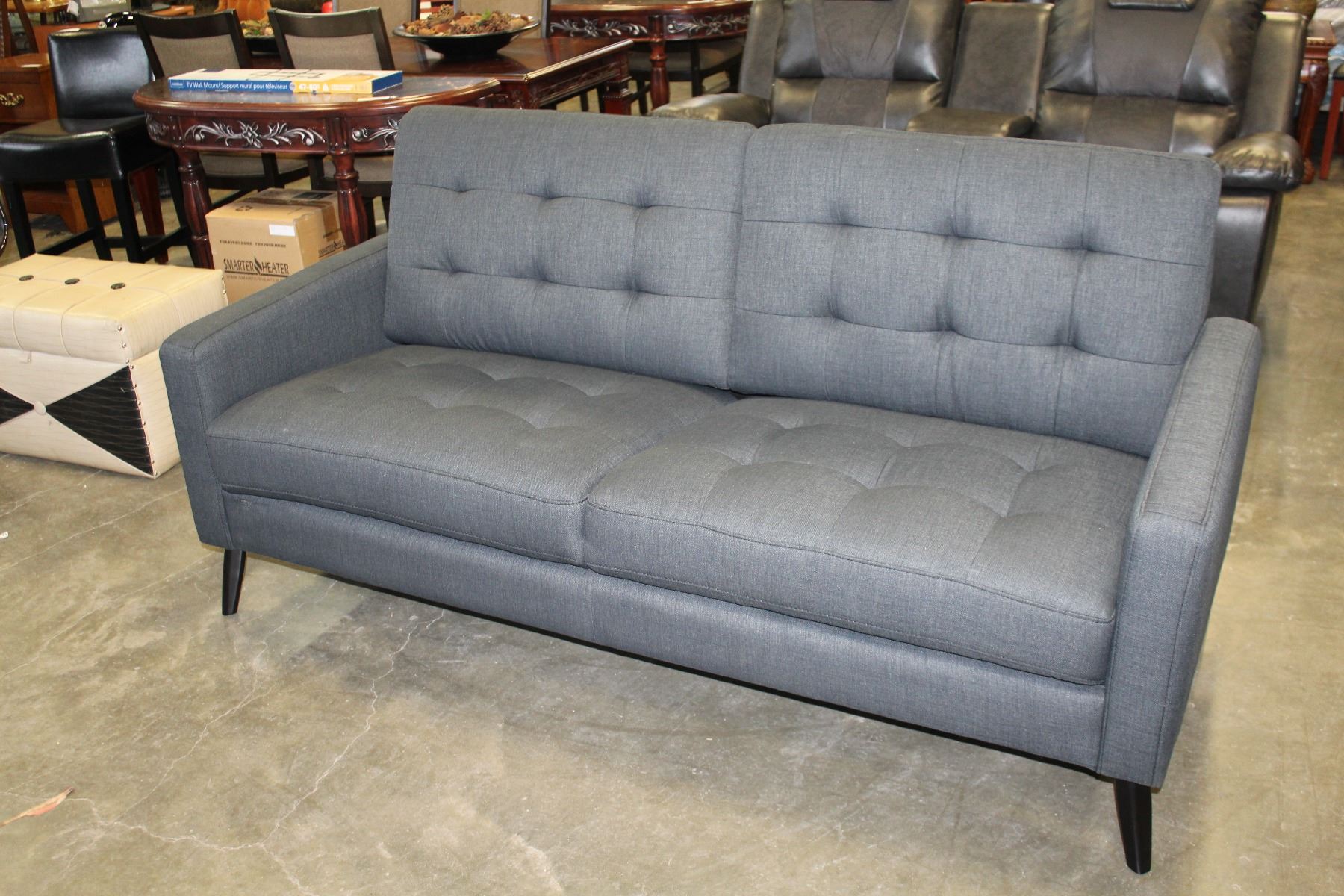 FLOOR MODEL MODERN GREY TUFTED CLUB STYLE SOFA HOME ELEGANCE RETAIL $1199