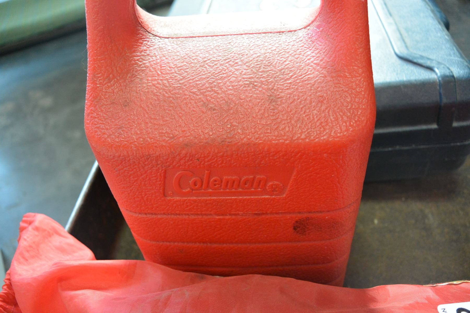 FOLDING CAMP CHAIR AND COLEMAN CAMP STOVE IN RED CASE