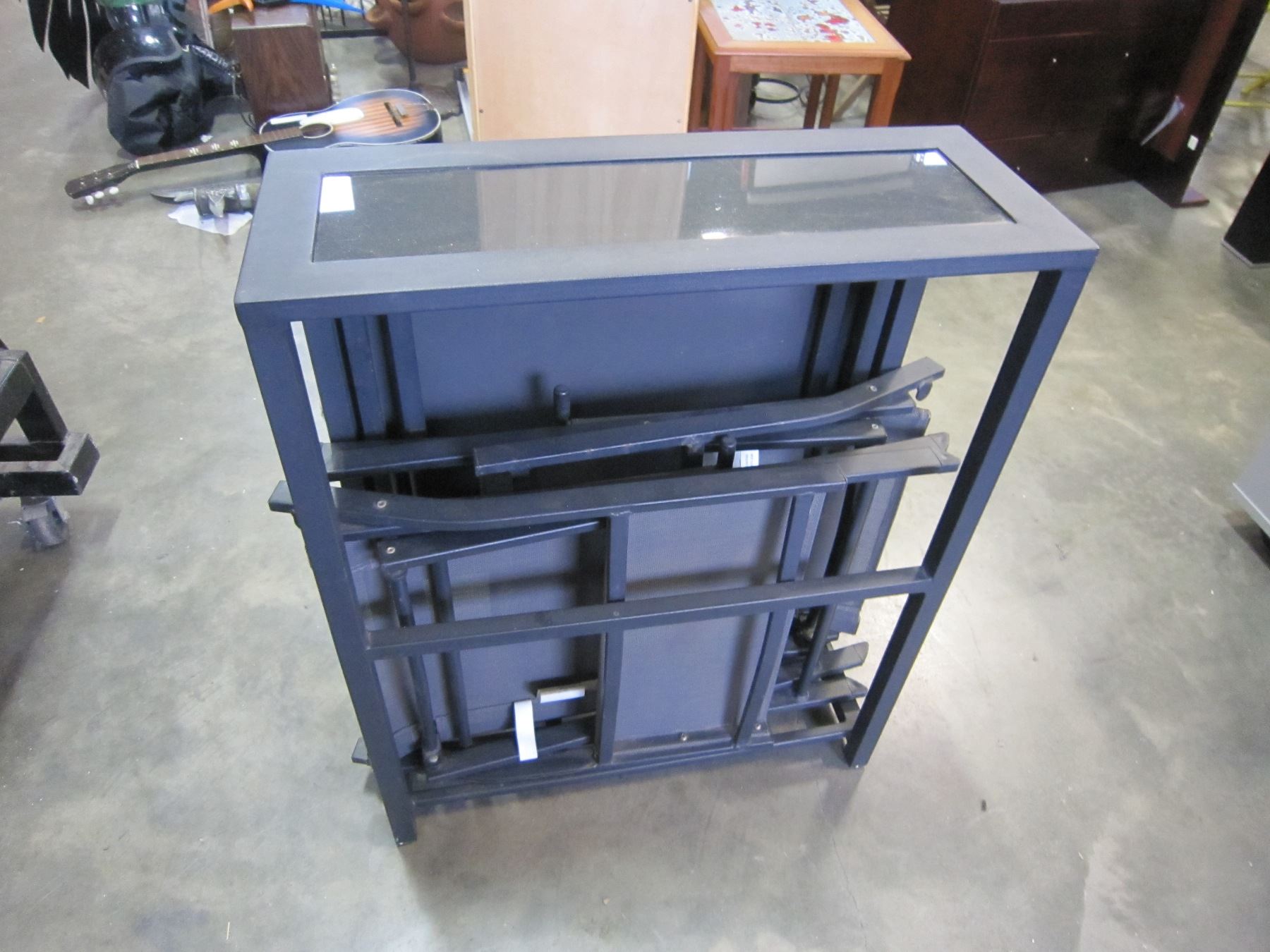 FOLDING COMPACT PATIO TABLE GLASS TOP DROP LEAF