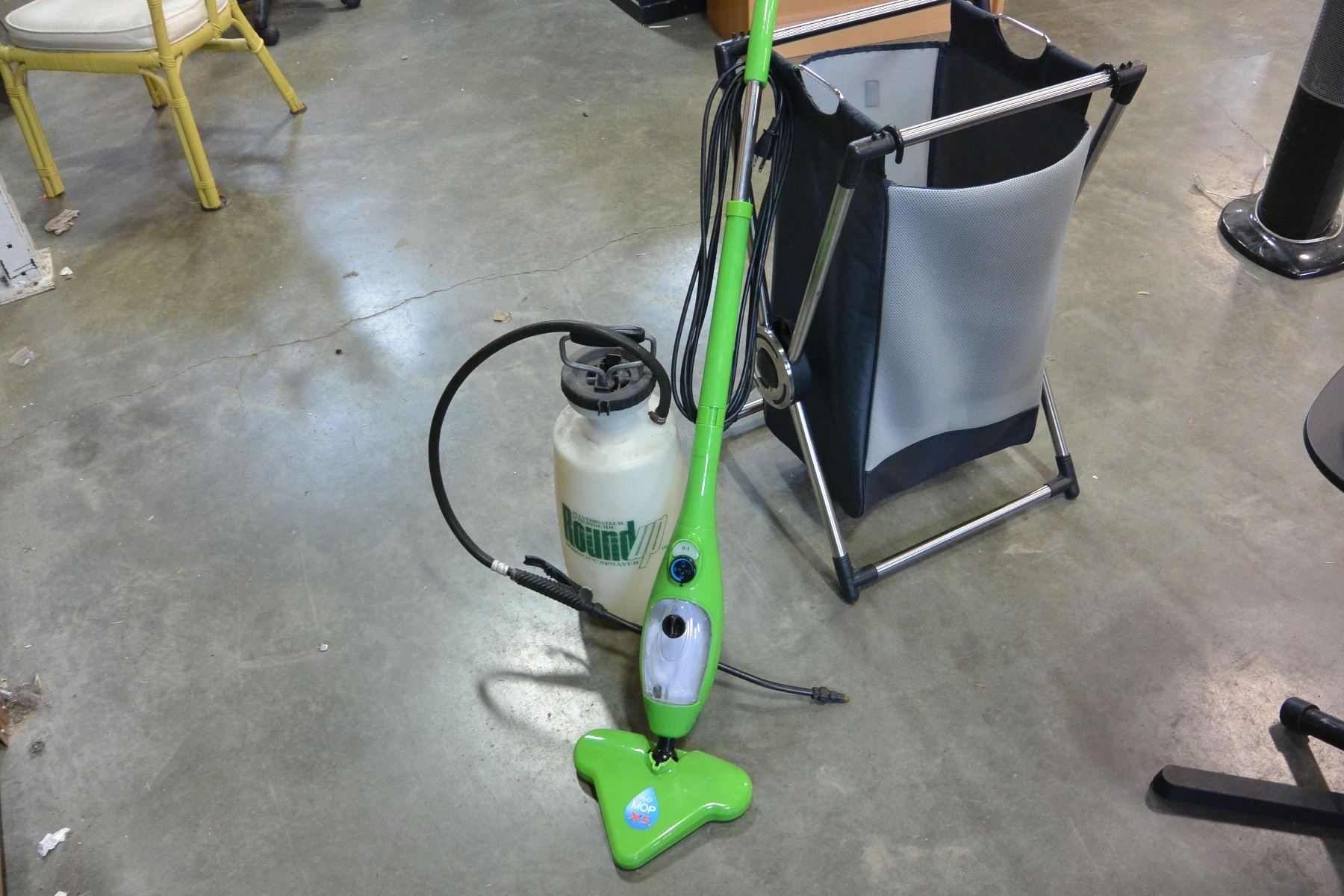 FOLDING LAUNDRY HAMPER AND H20 MOP AND ROUND UP SPRAYER