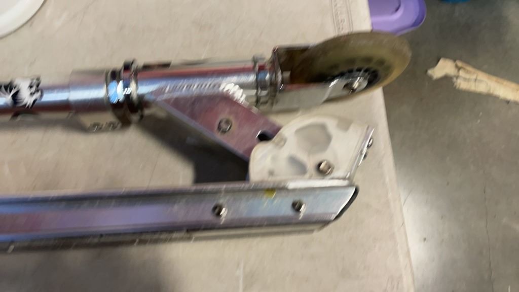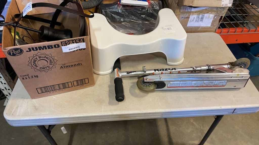 FOLDING SCOOTER, METAL CHANDELIER, BATHROOM FOOT RISER