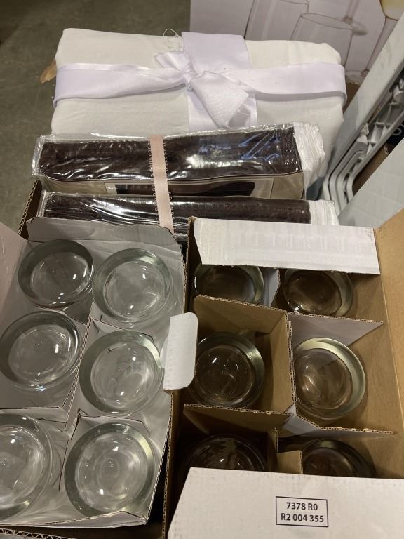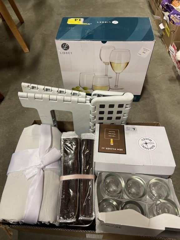 FOLDING STEP STOOL, PILLOW SHAMS AND ASSORTED GLASSWARE