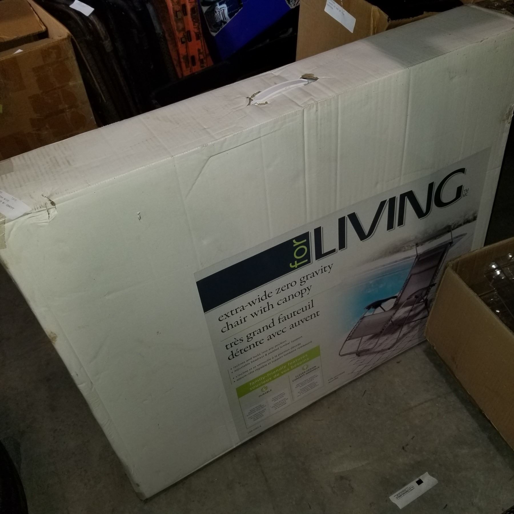 FOR LIVING EXTRA WIDE ZERO-GRAVITY CHAIR W/ CANOPY IN BOX