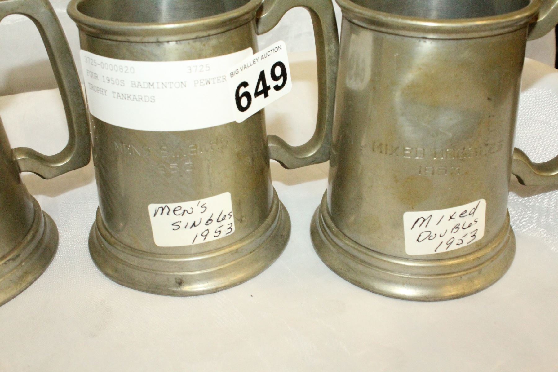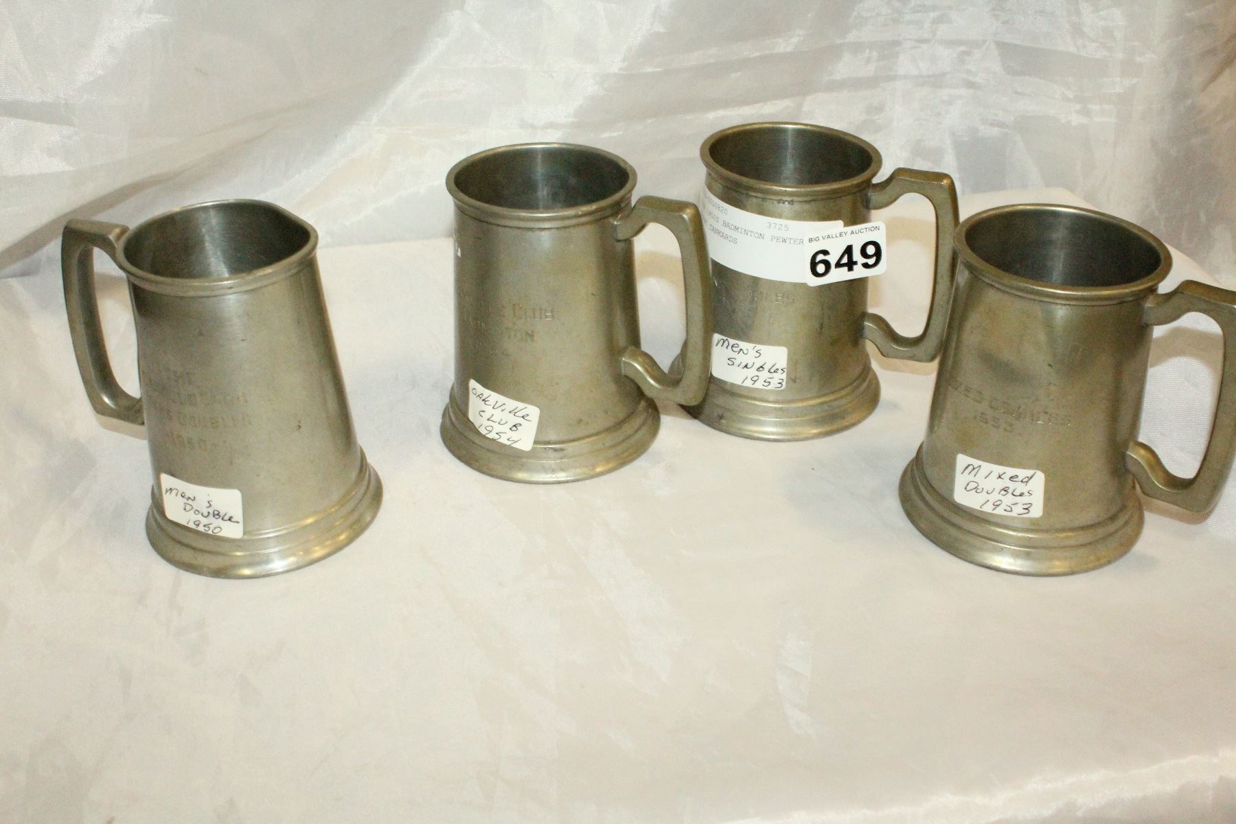 FOUR 1950S BADMINTON PEWTER TROPHY TANKARDS