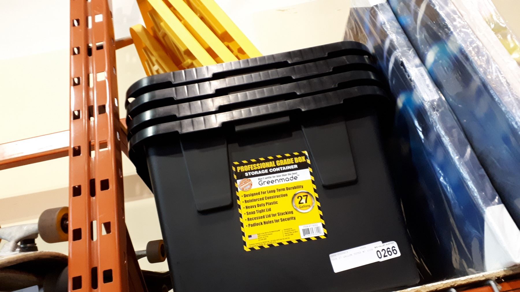 FOUR 27 GALLON TOTES W/ LIDS