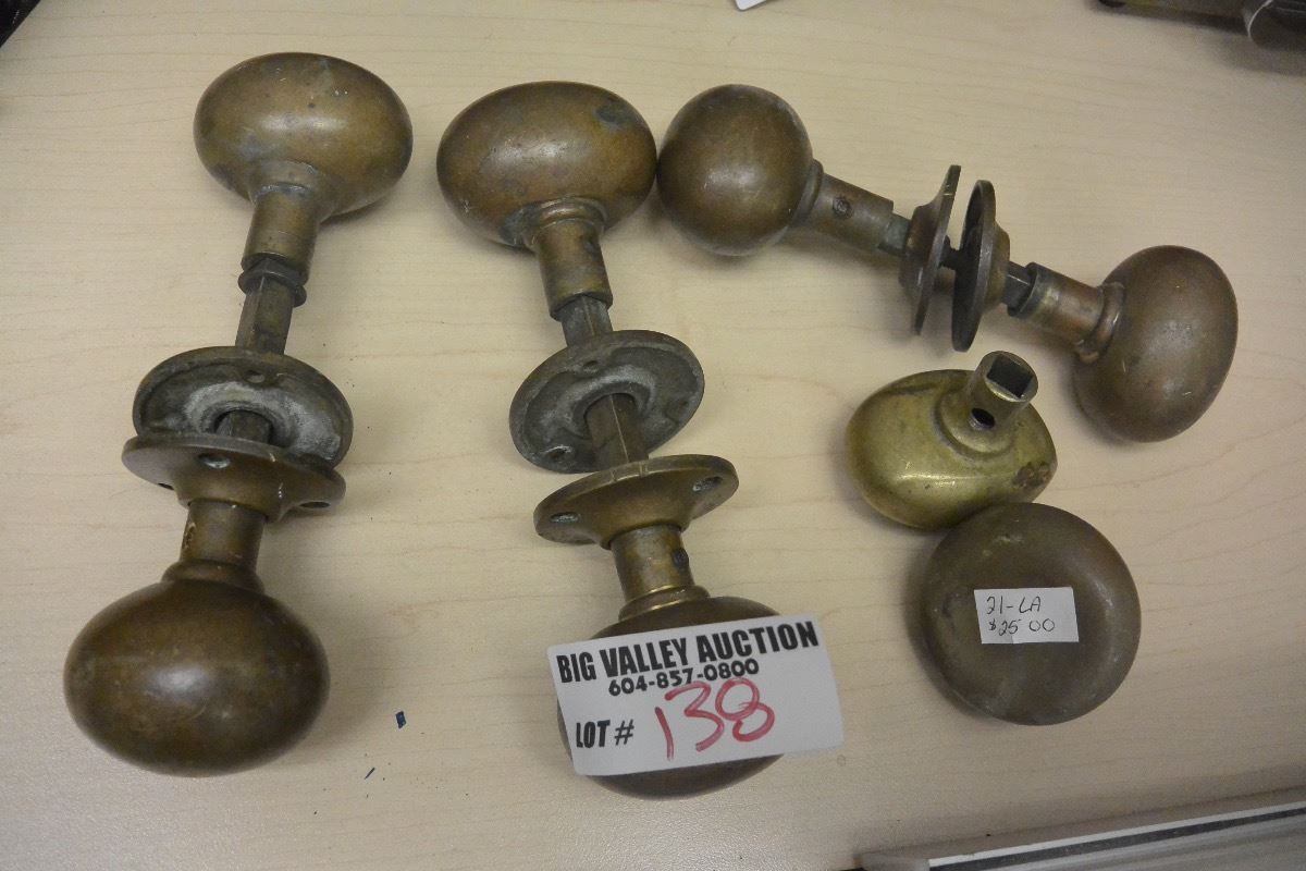 FOUR ANTIQUE BRASS DOOR KNOBS