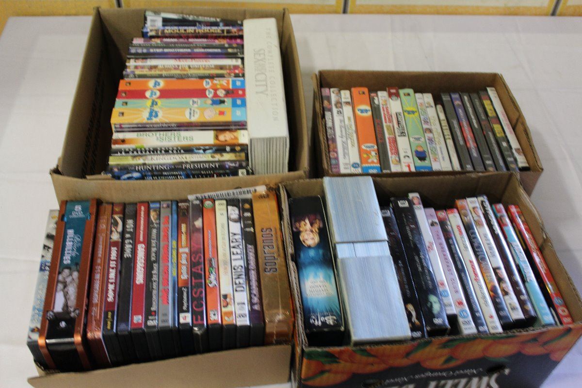 FOUR BOXES OF DVDS