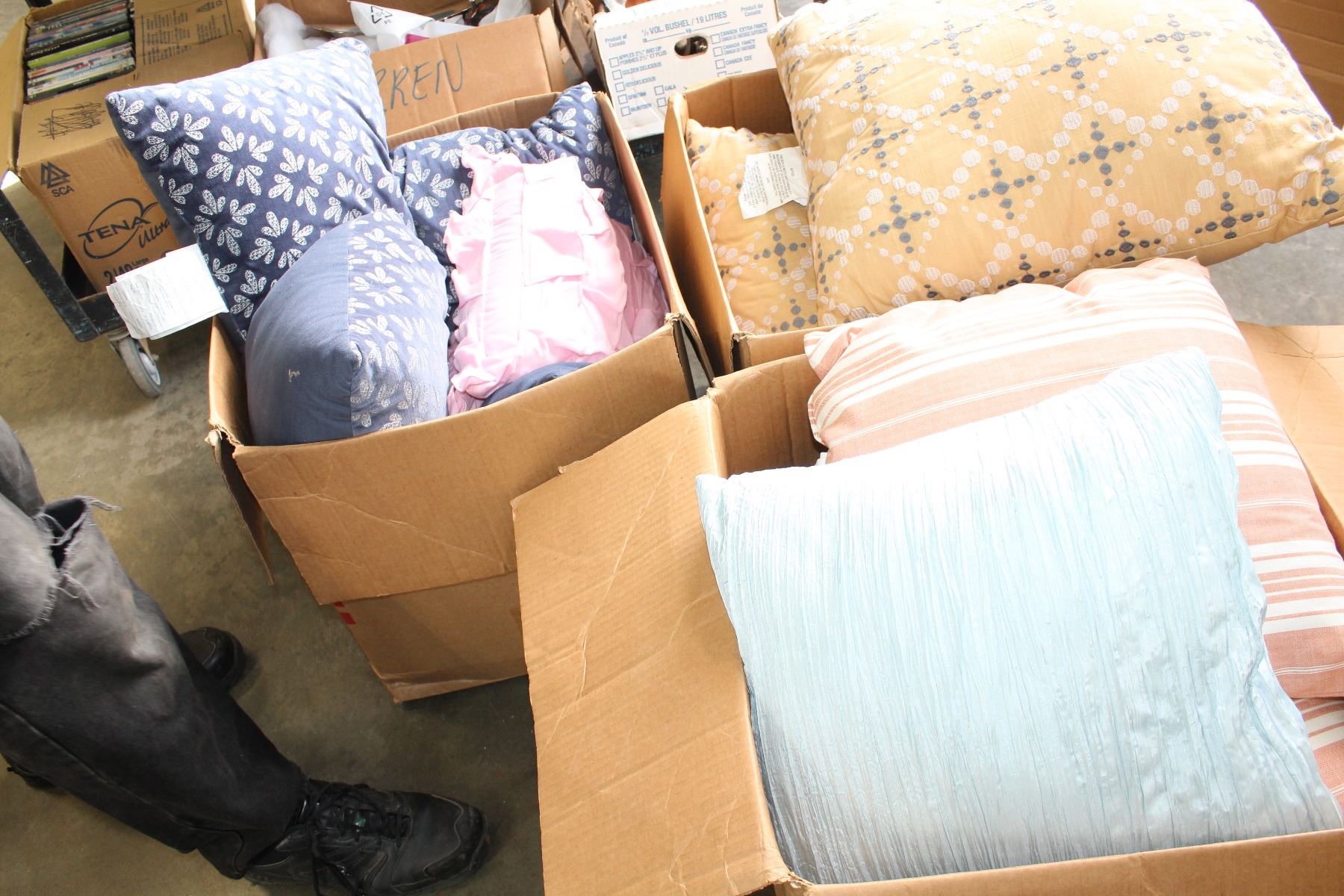 FOUR BOXES OF VARIOUS NEW CUSHIONS AND PILLOWS