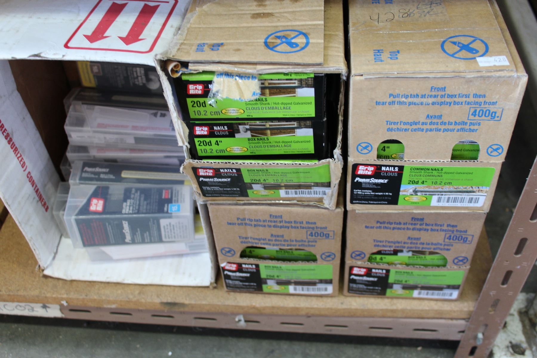 FOUR CASES OF 4 INCH COMMON NAILS AND BRAD NAILS AND DUAL FAST STAPLES