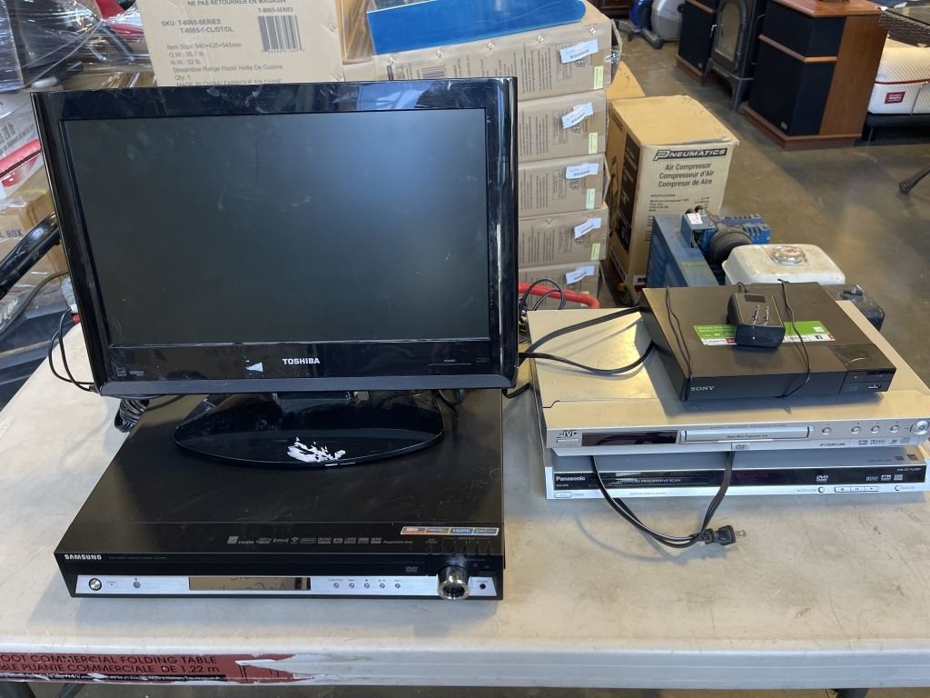 FOUR DVD PLAYERS AND 19-IN TOSHIBA TV