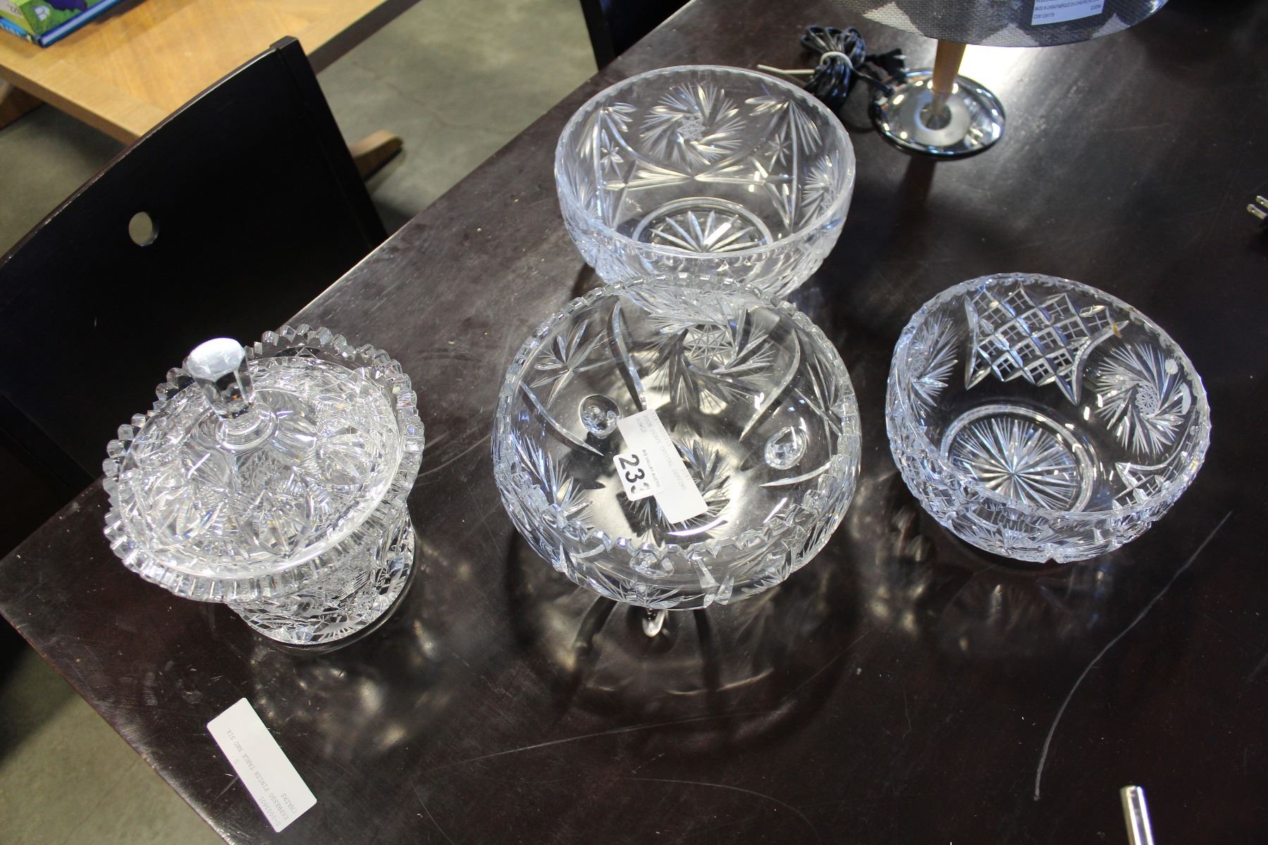 FOUR HEAVY CRYSTAL SERVING BOWLS
