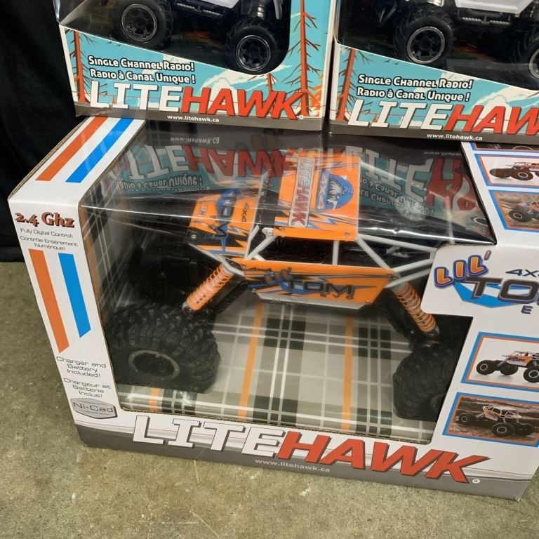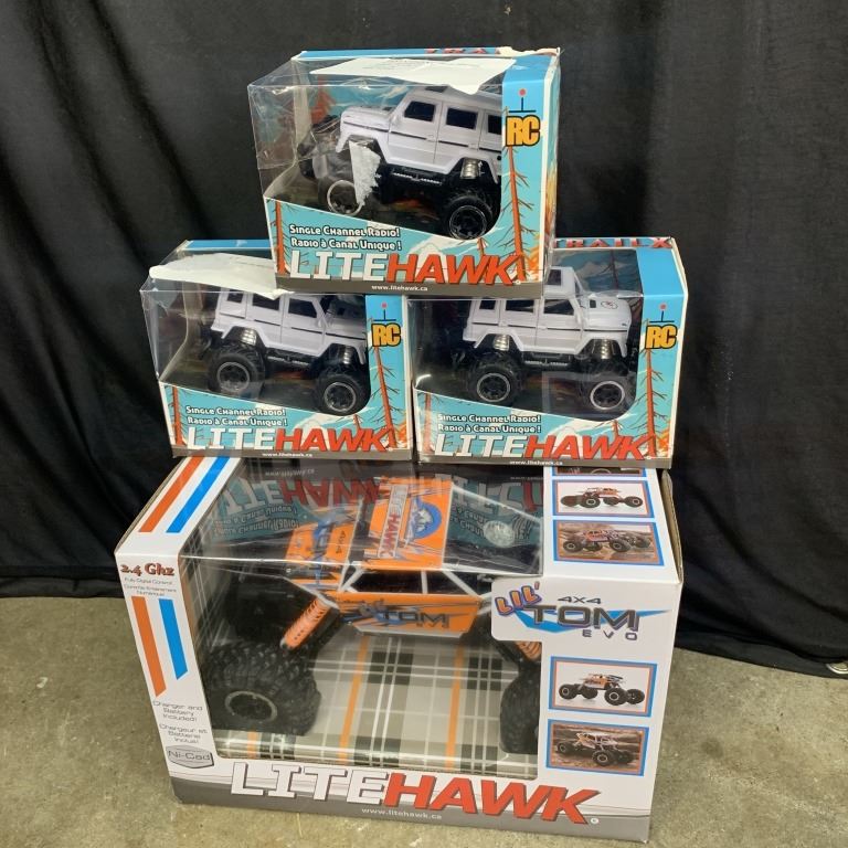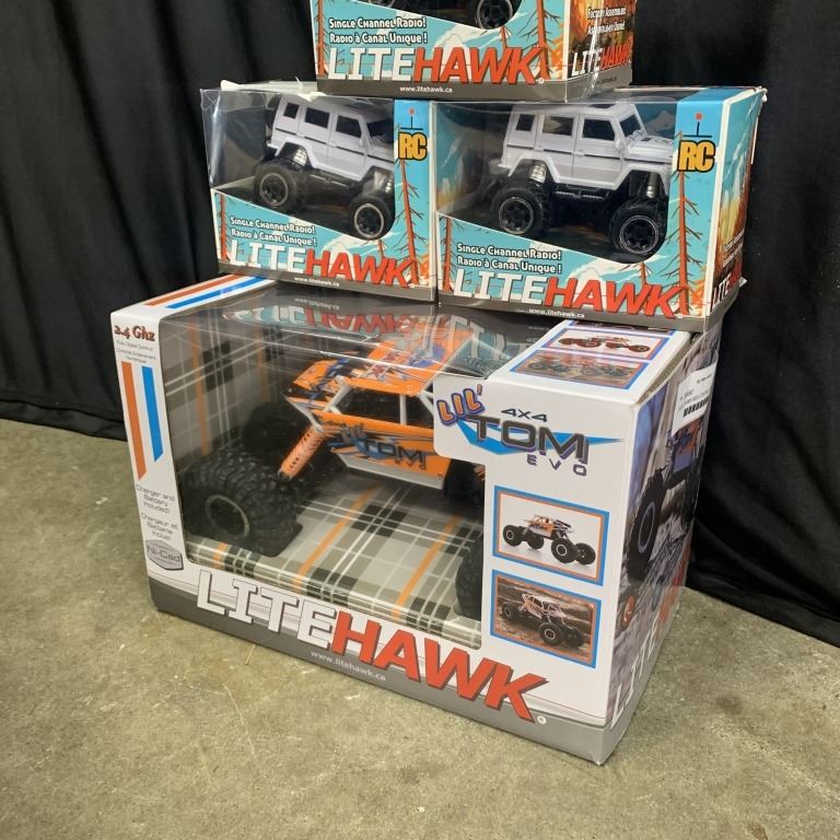 FOUR LITEHAWK RADIO CONTROLLED TRUCKS STORE RETURN UNTESTED