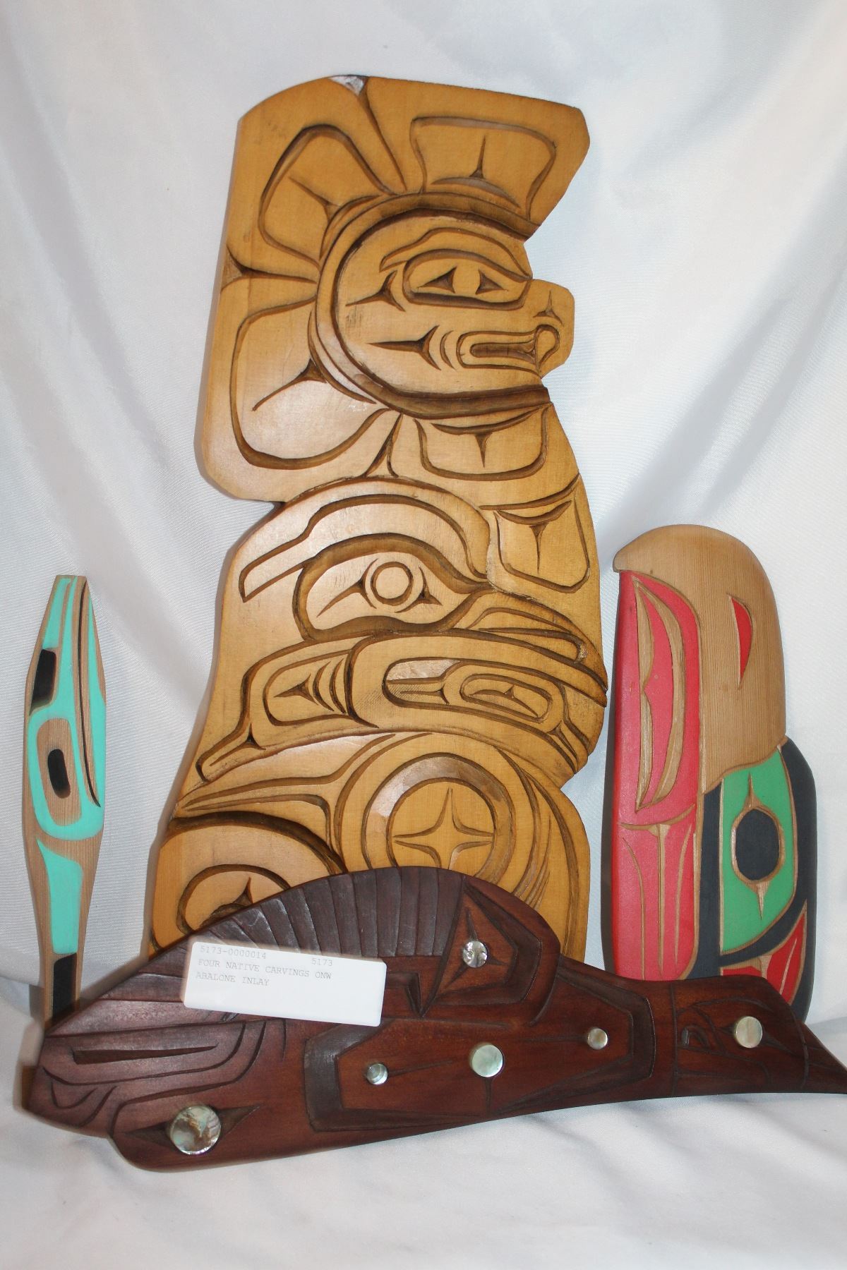 FOUR NATIVE CARVINGS ONW ABALONE INLAY