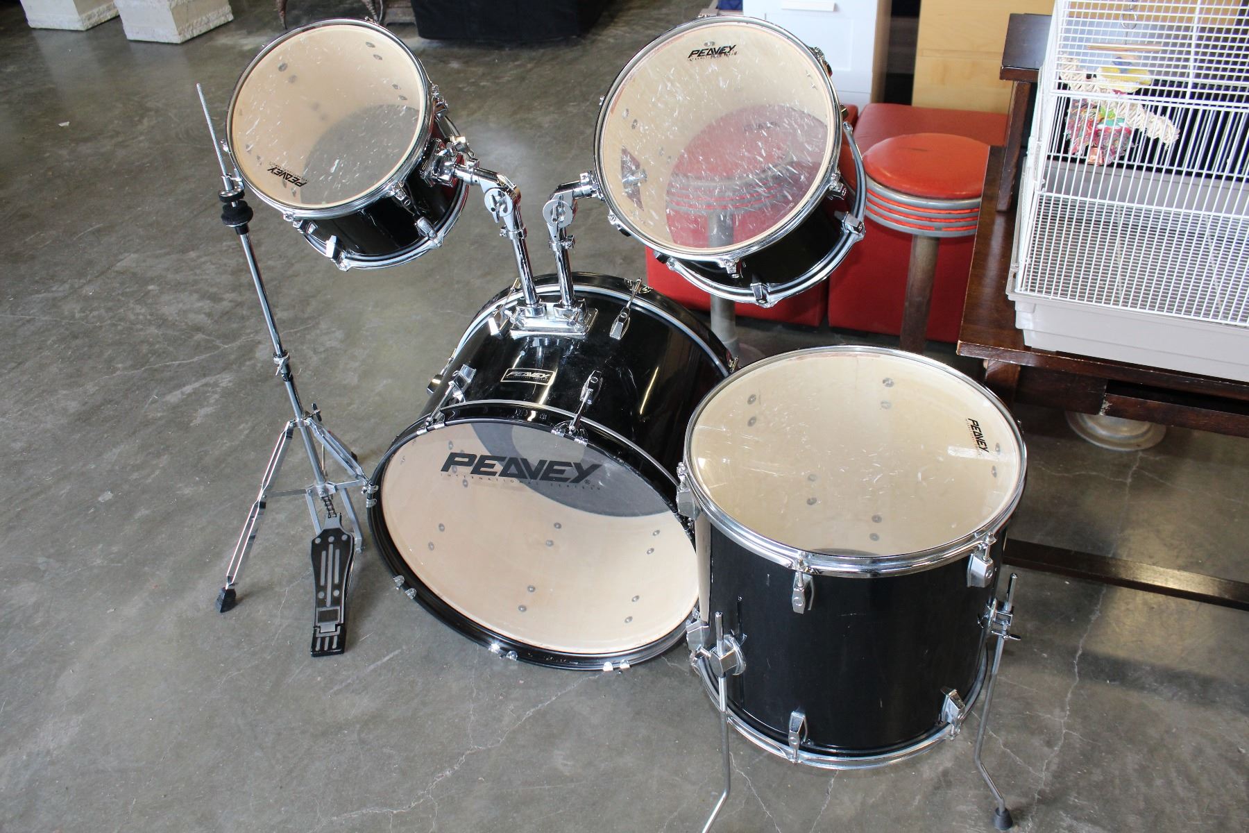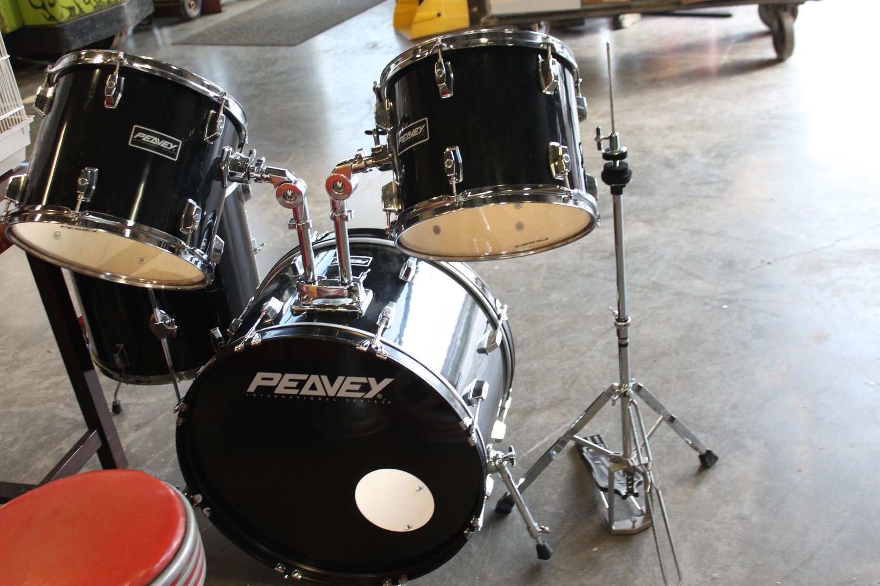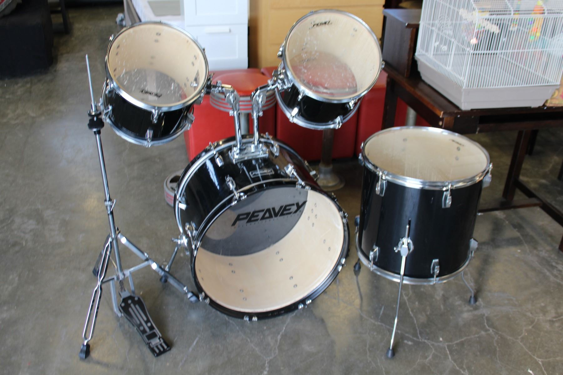 FOUR PIECE PEAVEY DRUM SET WITH ACCESSORIES