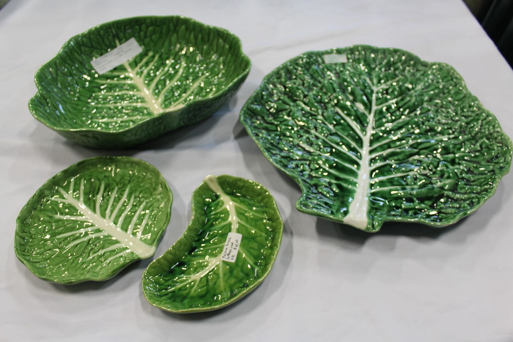 FOUR PIECES OF MAJOLICA BORDELLO LEAF PATTERN SERVING PIECES