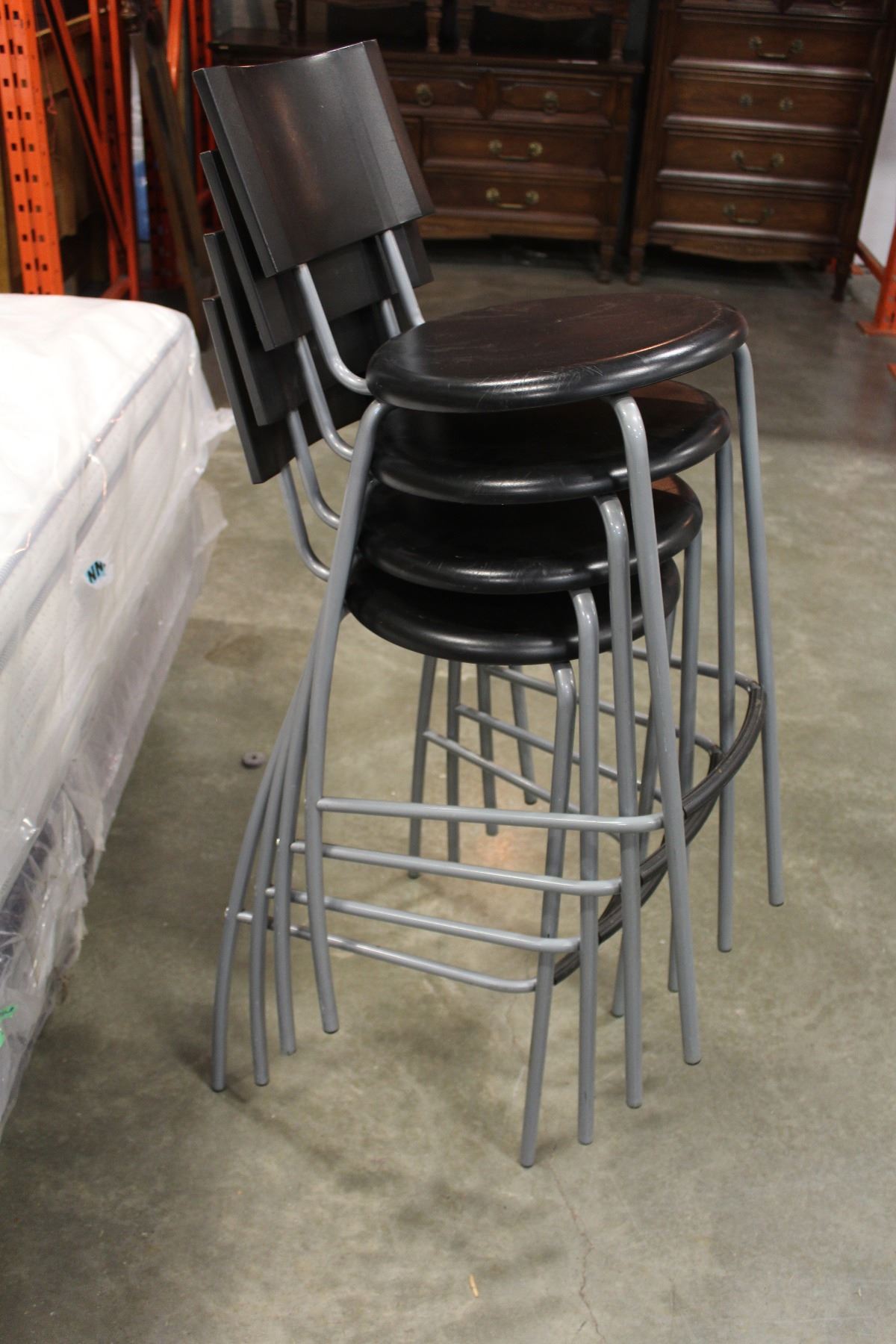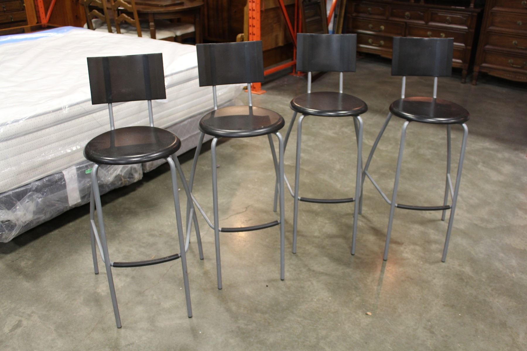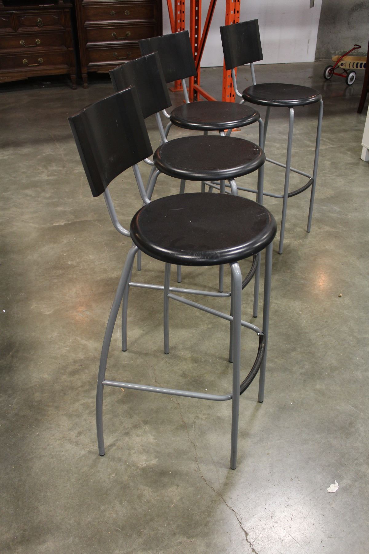 FOUR PLASTIC AND METAL BAR STOOLS
