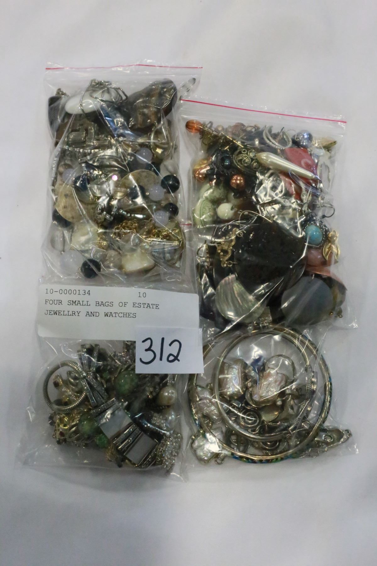 FOUR SMALL BAGS OF ESTATE JEWELLRY AND WATCHES
