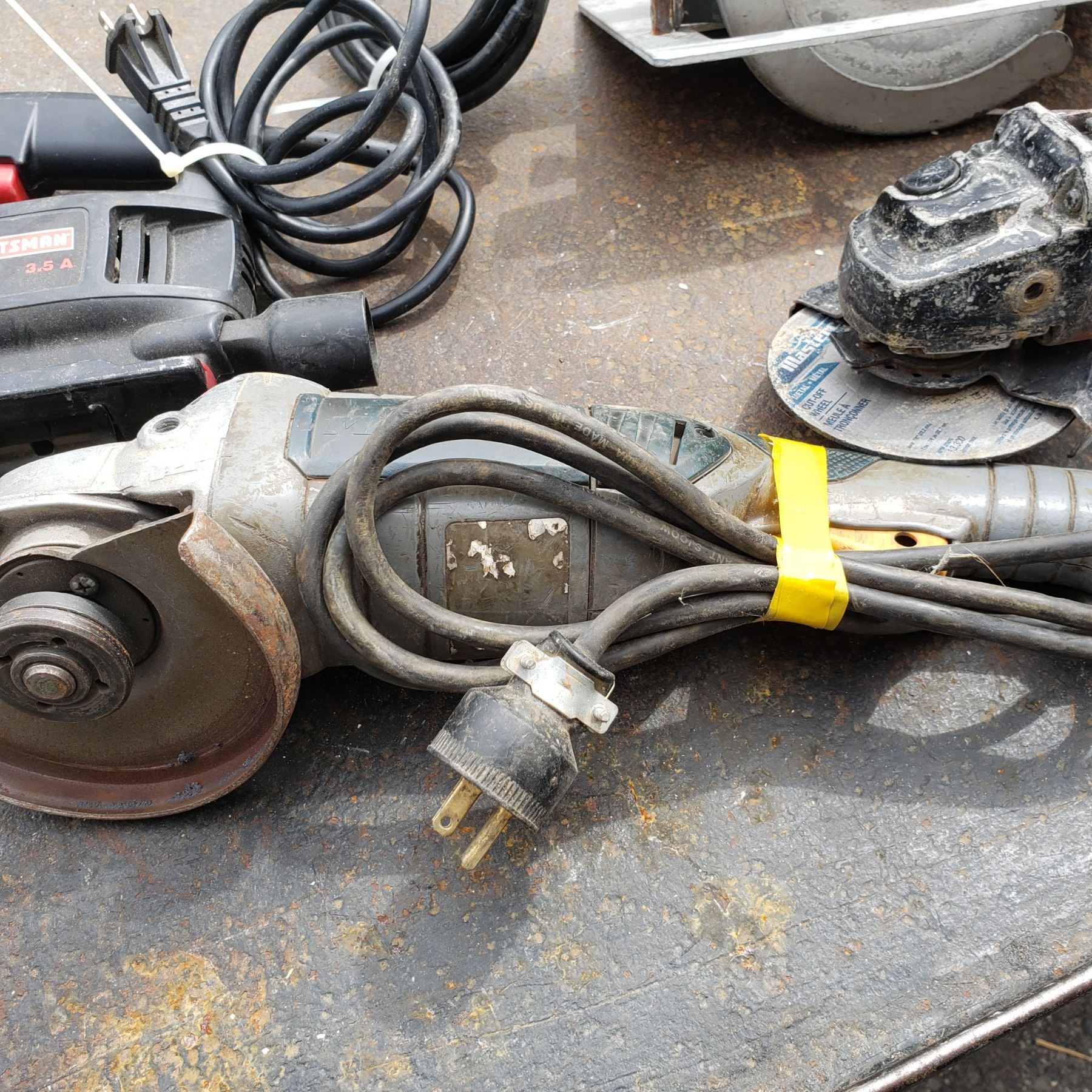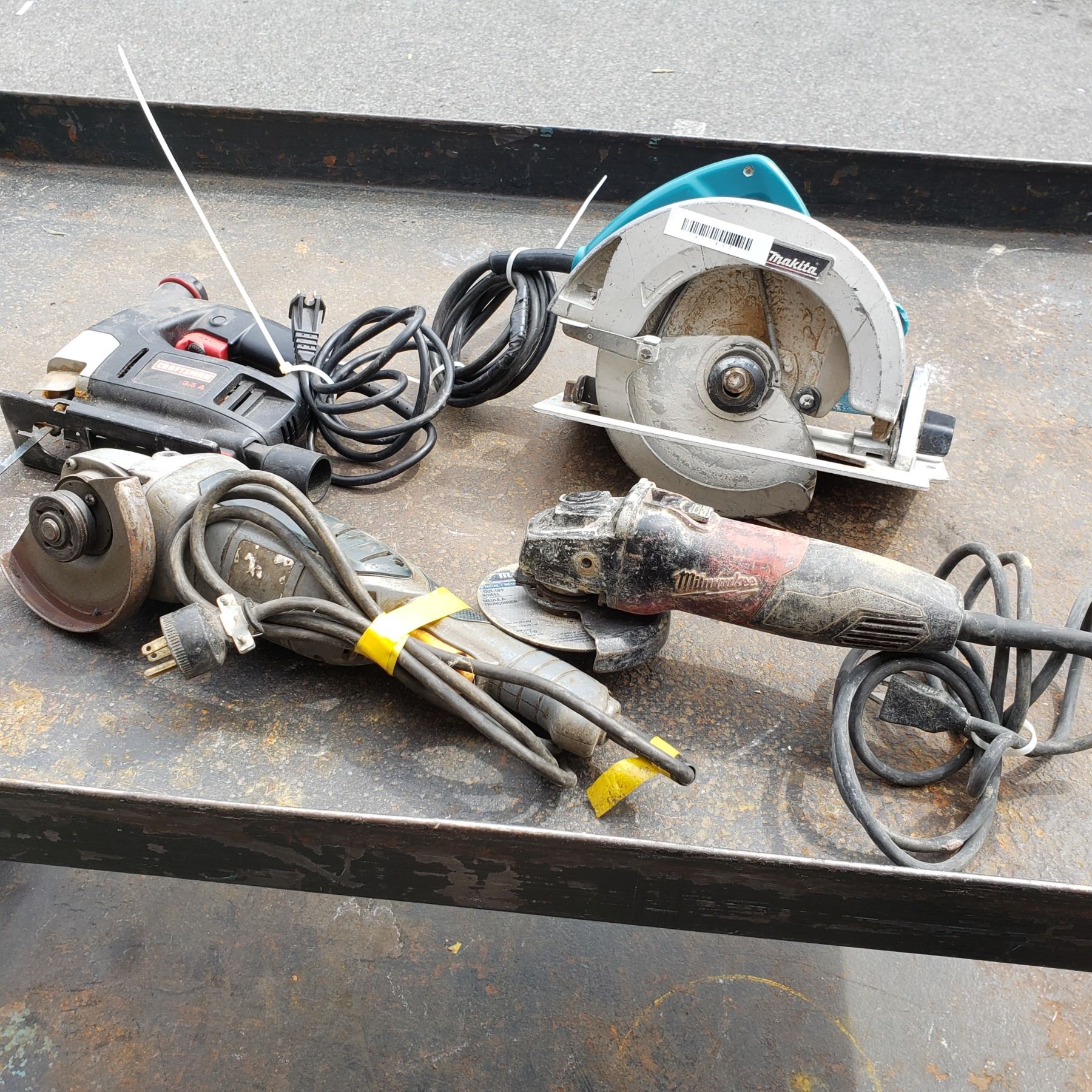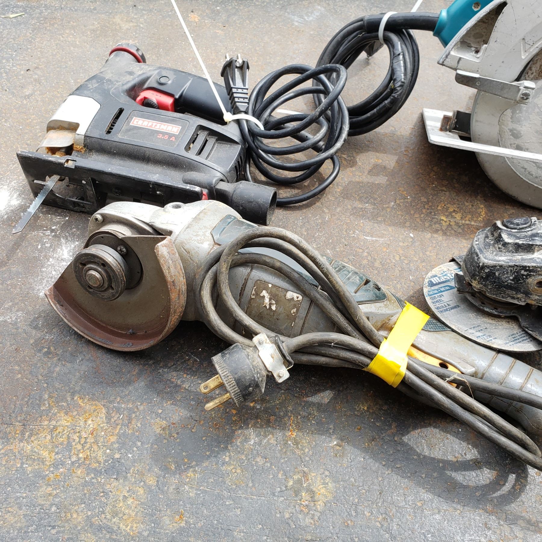 FOUR TOOLS MAKITA SKILSAW, CRAFTSMAN JIGSAW, MILWAUKEE AND MASTERCRAFT ANGLE GRINDERS