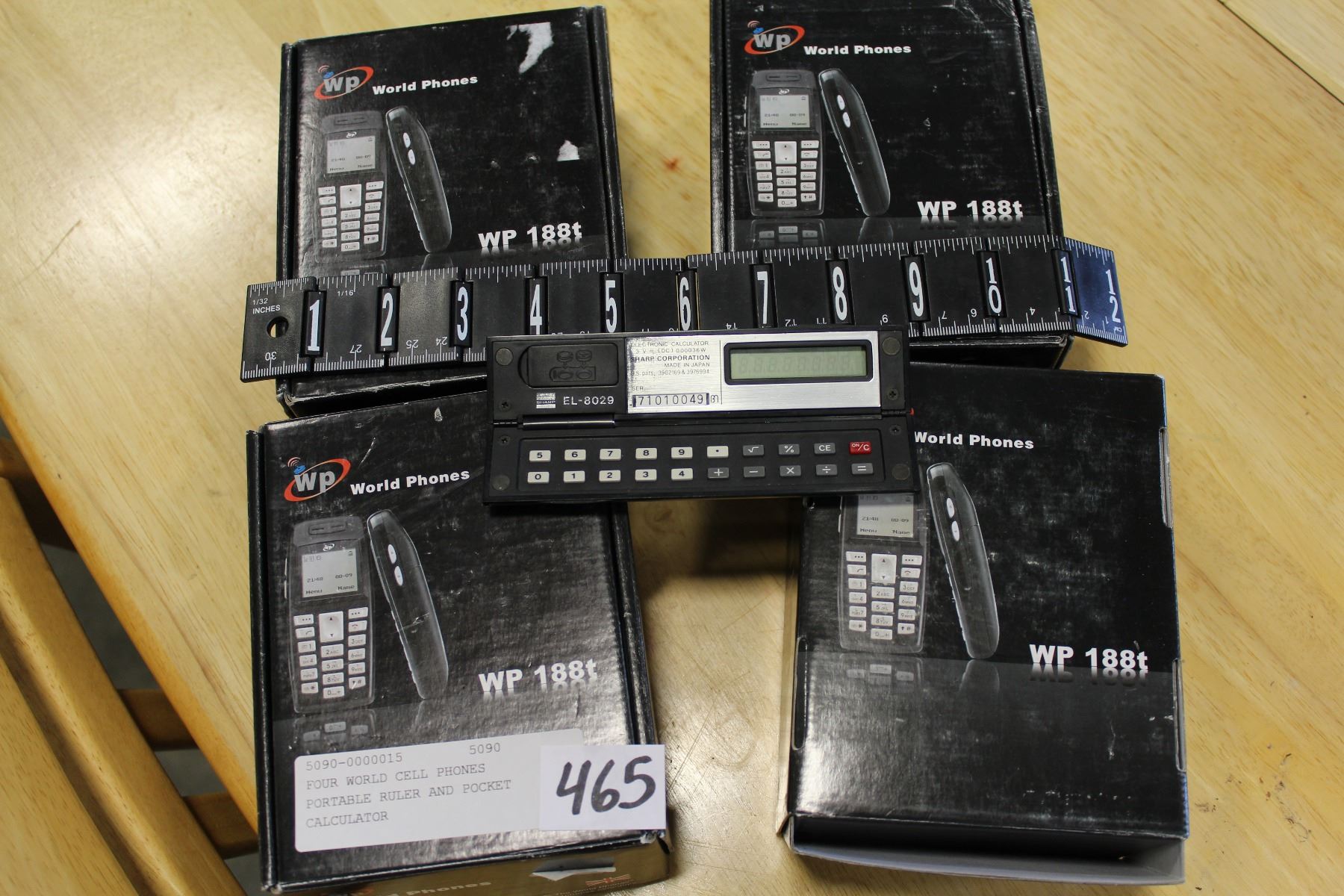 FOUR WORLD CELL PHONES PORTABLE RULER AND POCKET CALCULATOR
