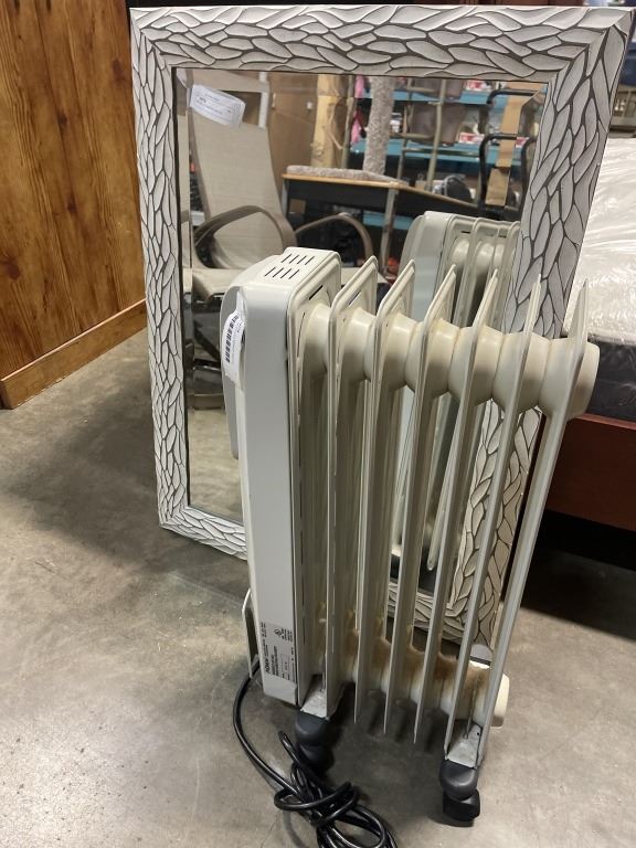 FRAMED BEVELLED MIRROR AND OIL HEATER