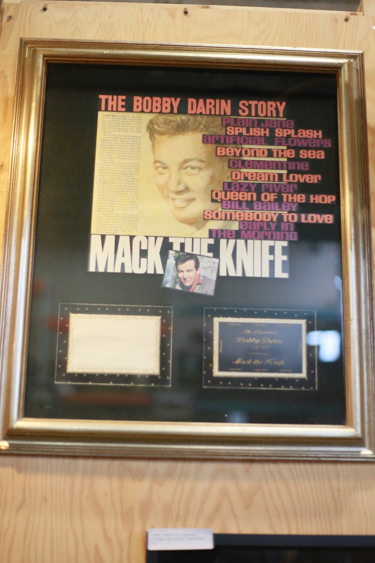 FRAMED BOBBY DARIN SIGNED AND FRAMED SIGNATURE AND STORY, EXTREMELY RARE, VALUED OVER $750