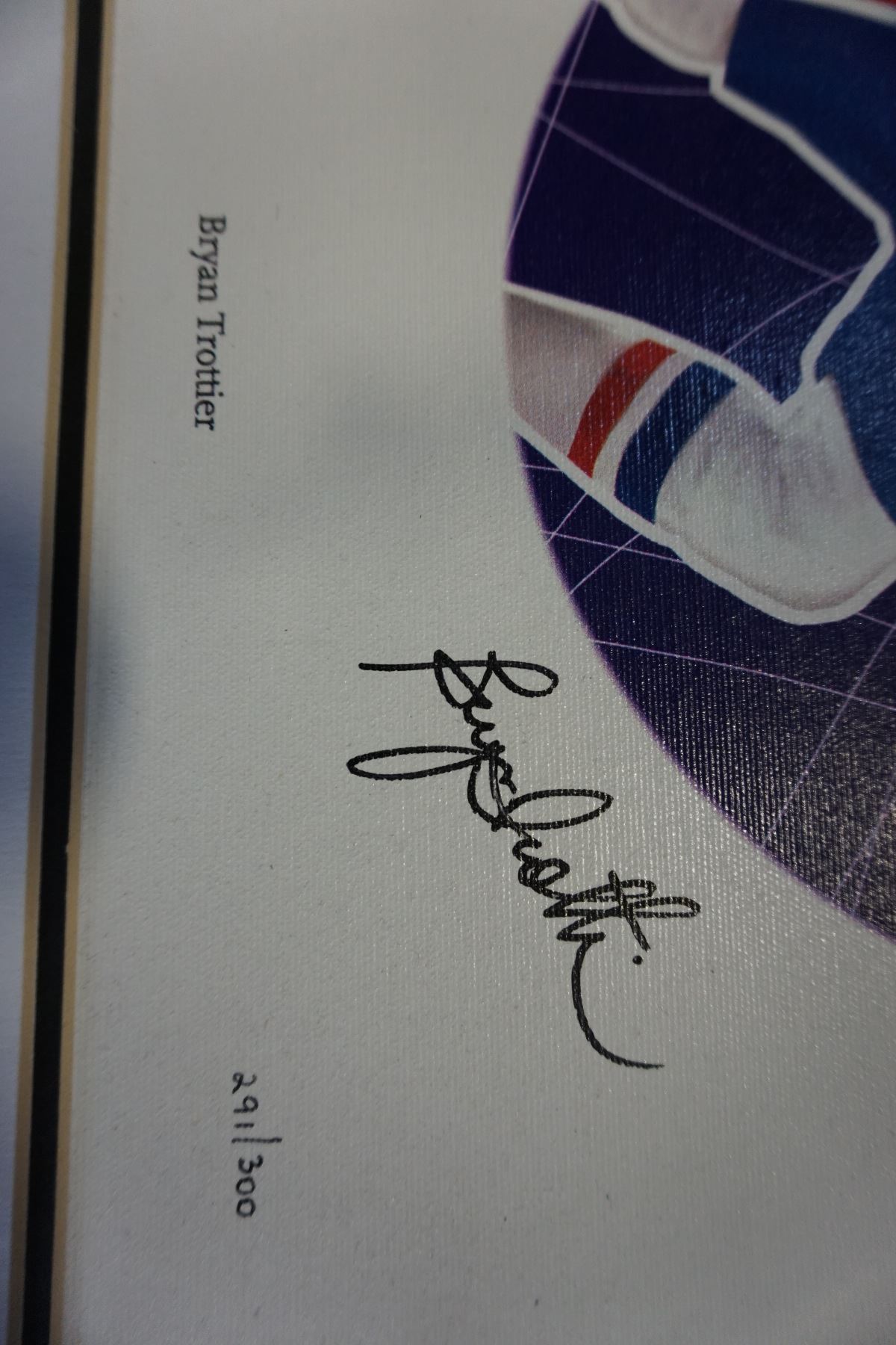 FRAMED BRYAN TROTTIER SIGNED PRINT ON BOARD W/ COA