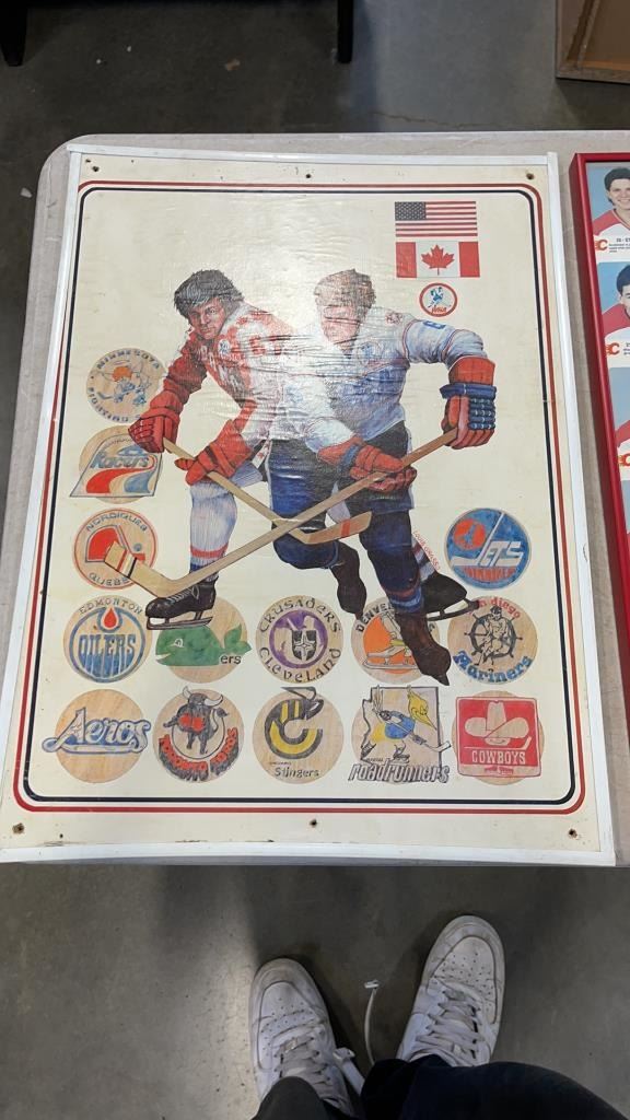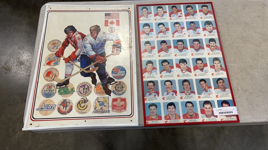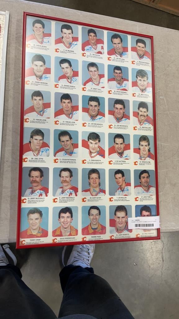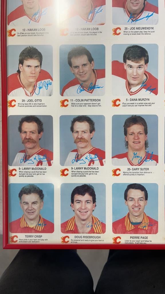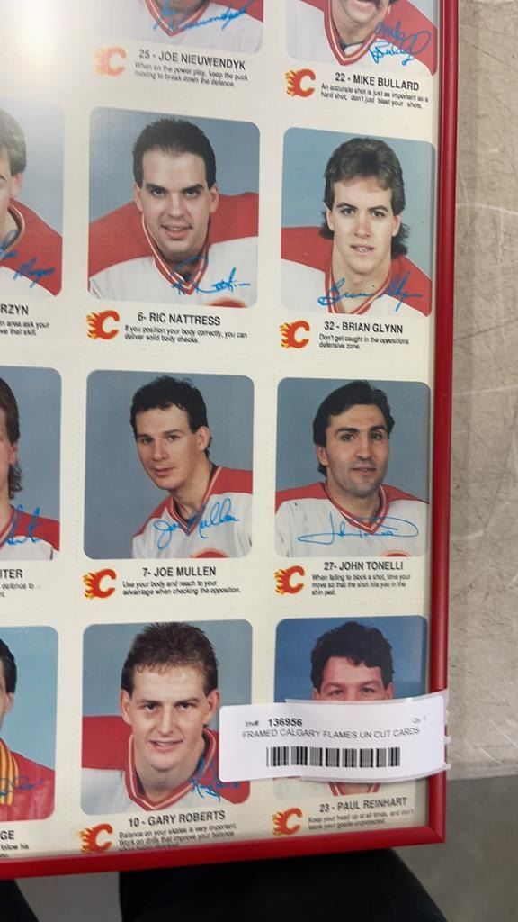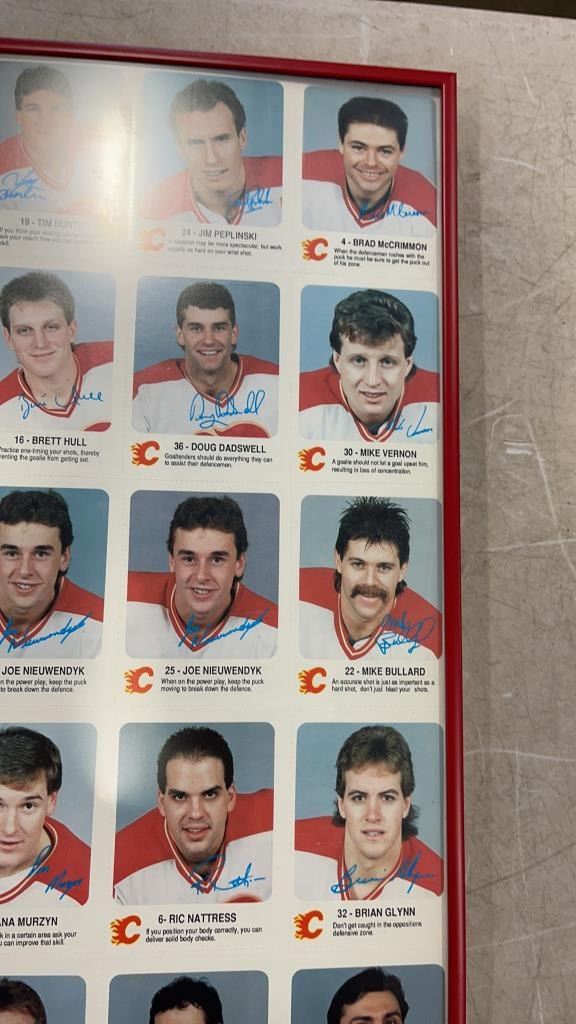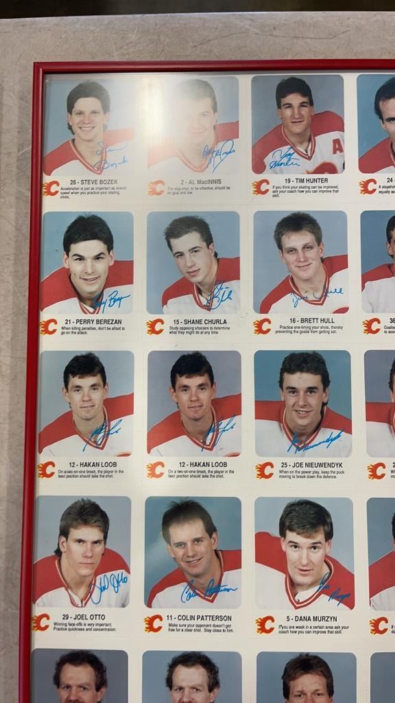 FRAMED CALGARY FLAMES UN CUT CARDS AND HOCKEY COLLAGE